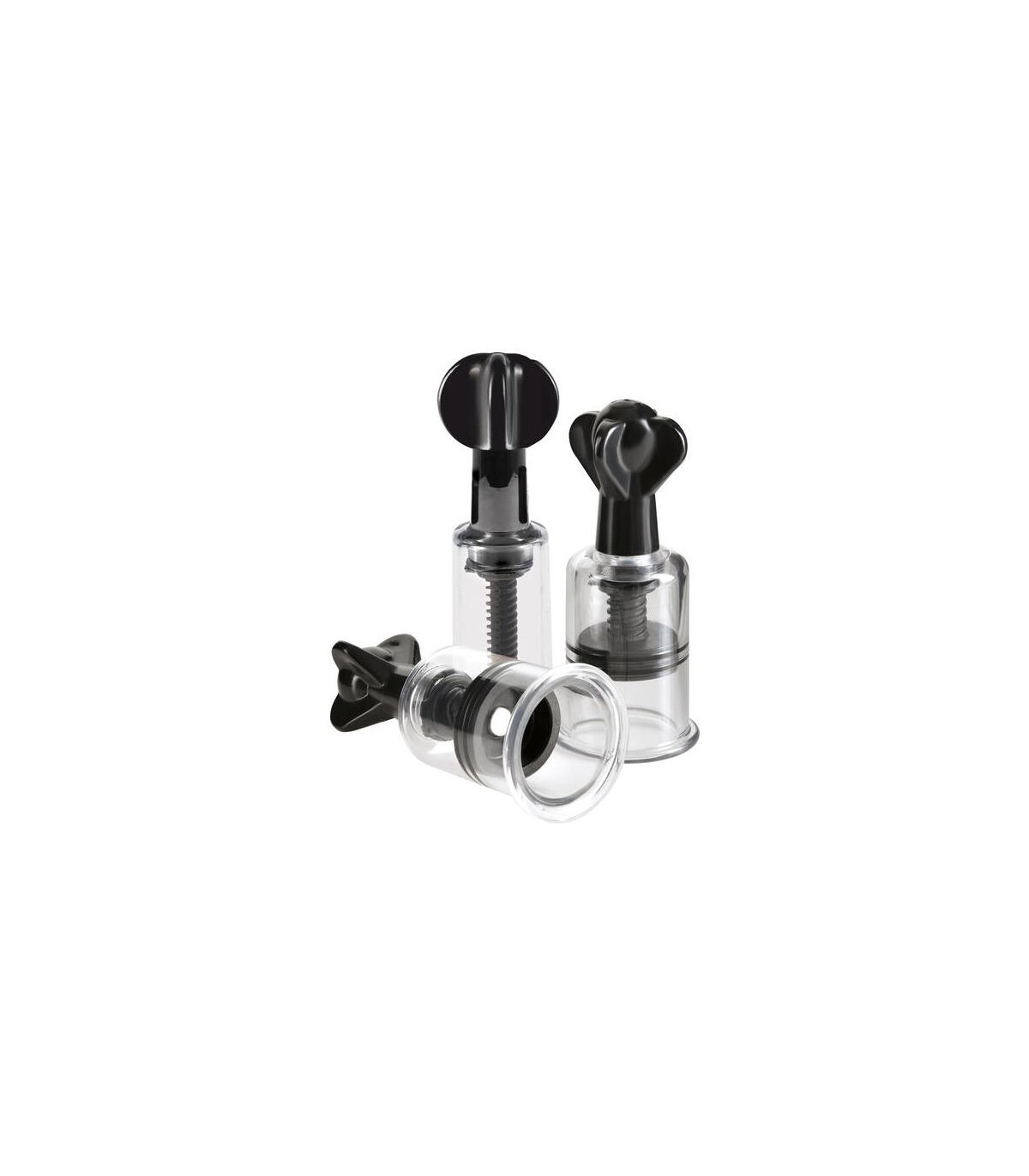 Aplique una ligera presión sobre el cilindro para asegurar un sellado hermético contra su cuerpo y gire la parte superior en el sentido de las agujas del reloj para activar la succión. Con cada giro del dial giratorio, las ventosas aumentarán el flujo sanguíneo al área objetivo y aumentarán la sensibilidad. Una vez que desenrosque el dial y alivie la presión, sus pezones y clítoris permanecerán firmes, extra sensibles y listos para lo que suceda a continuación. Lo mejor de todo es que estas increíbles súper ventosas brindan una succión alucinante sin el uso de una bomba externa voluminosa. Ya sea que disfrute del placer visual de sus pezones y clítoris recientemente agrandados o prefiera la fantástica sensación que obtiene de estas increíbles bombas de placer, ¡este trío de ventosas es un accesorio imprescindible para su próxima fantasía fetichista!
