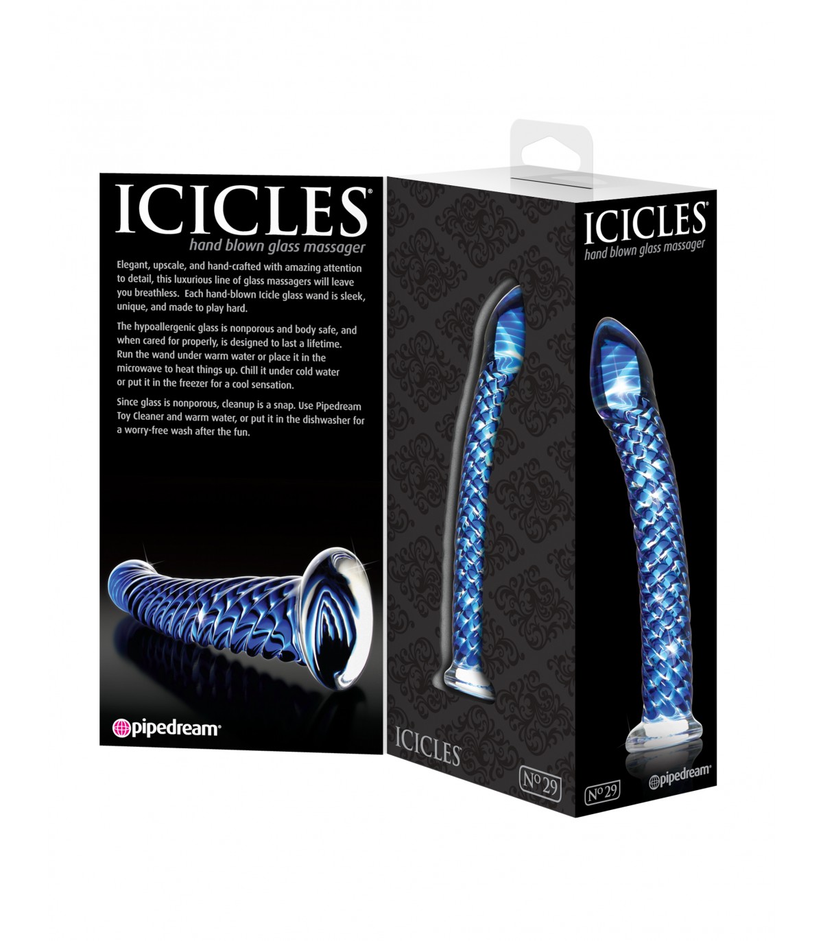 Elegante, de lujo y fabricado a mano con una increíble atención al detalle, esta lujosa línea de masajeadores de vidrio te dejará sin aliento. Cada varita de vidrio Icicle soplado a mano es elegante, única y está hecha para jugar con fuerza. El vidrio hipoalergénico no es poroso y es seguro para el cuerpo, y si se cuida adecuadamente, está diseñado para durar toda la vida.