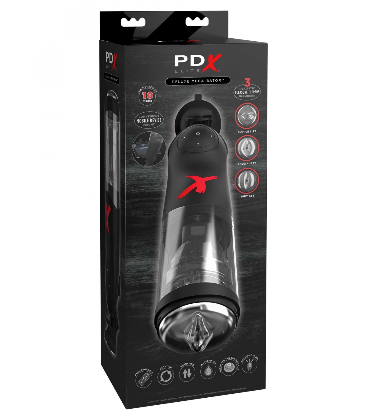 El PDX ELITE® Deluxe Mega-Bator es el único masturbador manos libres del mundo que hace todo el trabajo por usted, para que pueda experimentar la mejor experiencia de placer con manos libres.