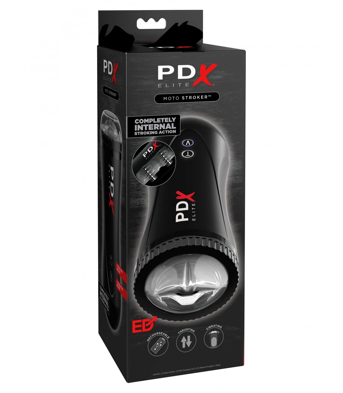 El PDX ELITE® Moto Stroker no solo te sacude como los masturbadores comunes, sino que combina una vibración increíble con un movimiento de acariciamiento automático súper suave.
