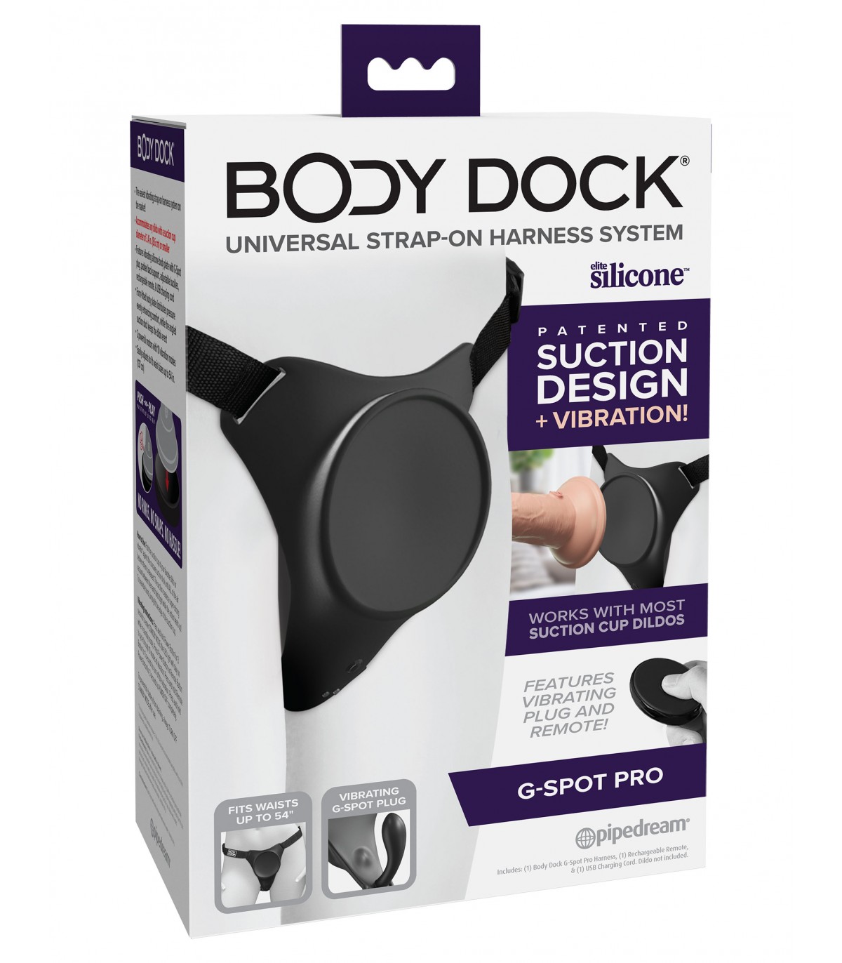 El Body Dock® G-Spot Pro patentado lleva el juego con correas a un nivel completamente nuevo con VIBRACIÓN. Cuenta con soporte para la espalda acolchado, hebillas ajustables de liberación lateral y una placa de acoplamiento de silicona de primera calidad con dos potentes motores para estimulación interna y externa. ¡Ahora, ambos miembros de la pareja pueden disfrutar de la acción, que también puedes controlar con el control remoto recargable! ¡Cambiar tu accesorio de correa favorito nunca ha sido más rápido ni más fácil! Es tan simple como colocar la ventosa de tu consolador o vibrador favorito en la placa de acoplamiento, mientras que las correas de nailon se ajustan fácilmente para adaptarse a la mayoría de los tamaños y tipos de cuerpo. Lo mejor de todo es que funciona con la mayoría de los consoladores del mercado actual, incluidos algunos que quizás ya tengas. ¡Sin anillos. Sin broches. Sin complicaciones!