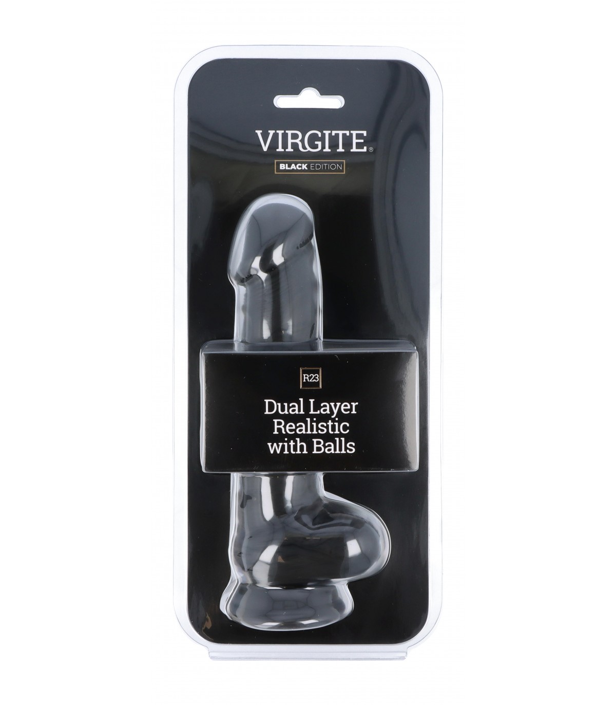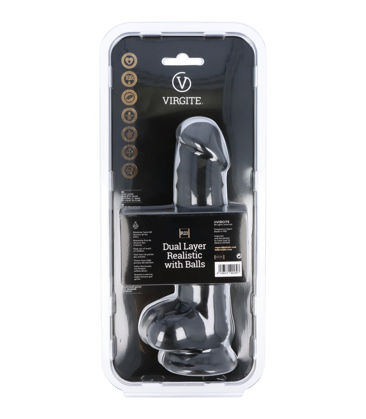 DUAL LAYER REALISTIC 20CM WITH BALLS R23 BLACK