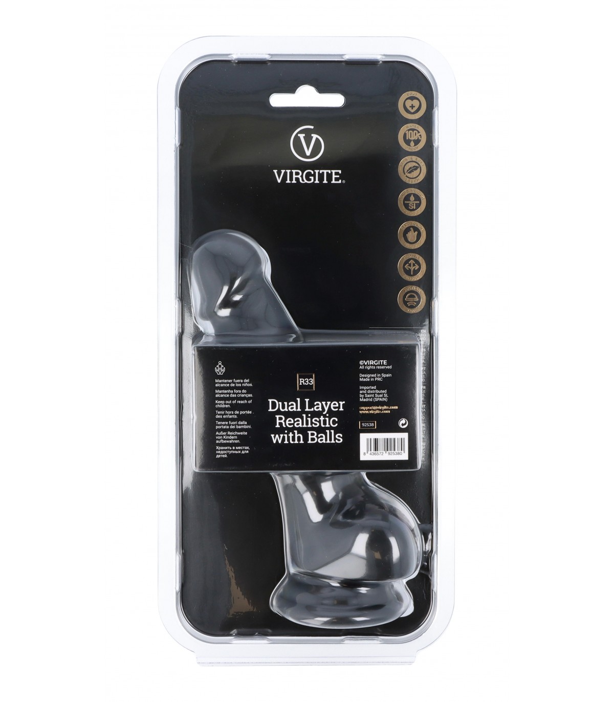 DUAL LAYER REALISTIC 18'5CM WITH BALLS R33 BLACK