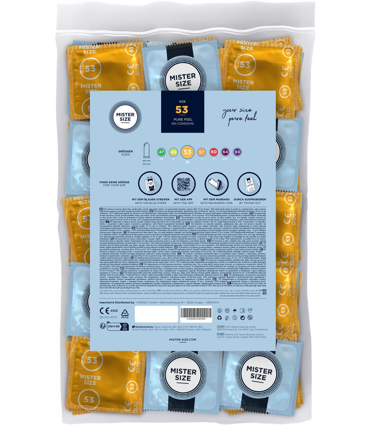 PRESERVATIVOS MISTER SIZE PURE FEEL EXTRA FINO 53MM 100 UDS