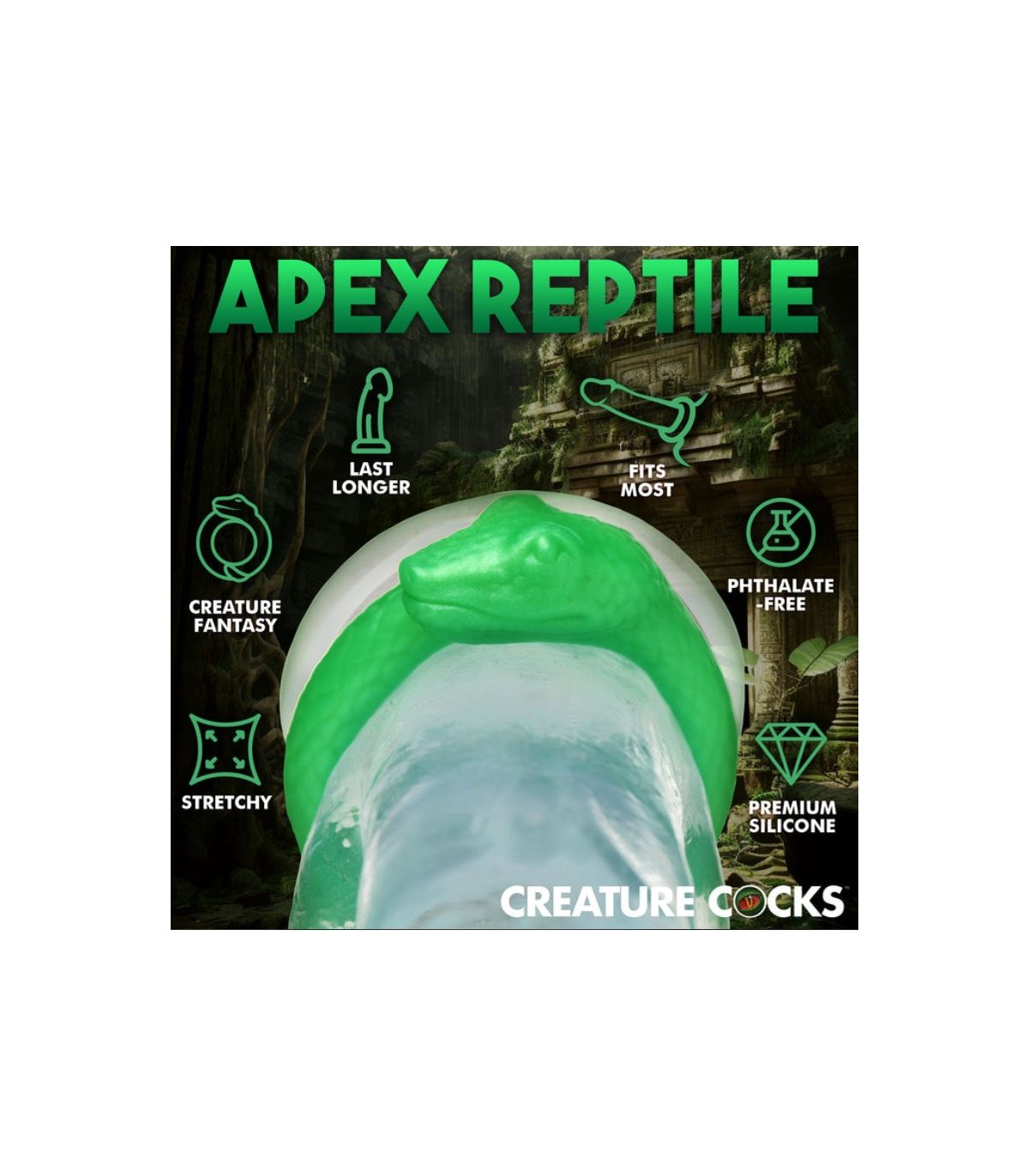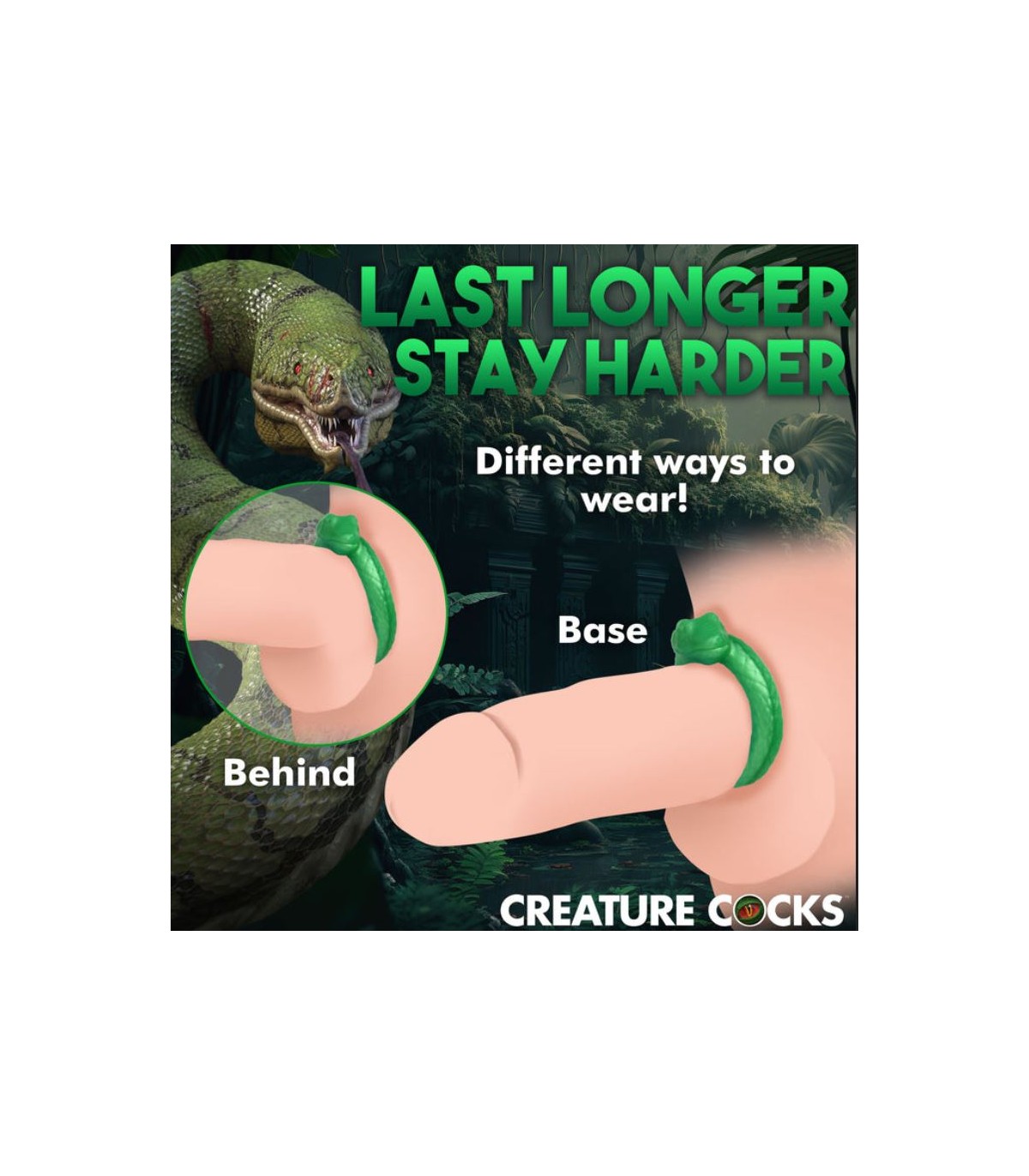 ¡Decora tu pene con este anillo de fantasía en forma de C! Este anillo de serpiente de jade envuelve delicadamente tu pene para que sea el complemento perfecto para tu pene. Puede colocarse sobre el pene o también estirarse para que se ajuste alrededor del pene y debajo de los testículos. Puede mejorar tu tiempo de juego, aumentar la intensidad del clímax y ayudarte a mantenerte rígido por más tiempo. ¡Combina esto con cualquier juego de rol de fantasía o escena creativa para que sea un poco más divertido!