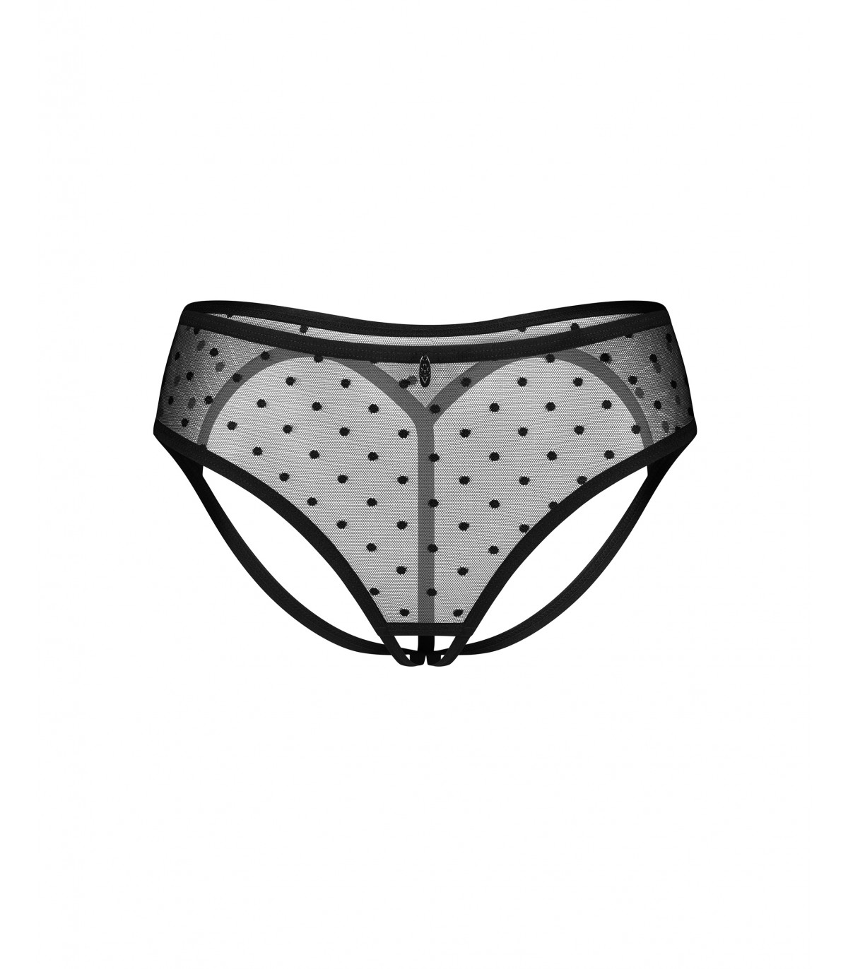 Estas braguitas Nuites de cintura alta y sin entrepierna aportan un toque divertido con lunares negros y un corte en forma de corazón en la espalda. Están confeccionadas en una malla suave y transparente y cuentan con un colgante plateado único que le da un toque adicional de elegancia.