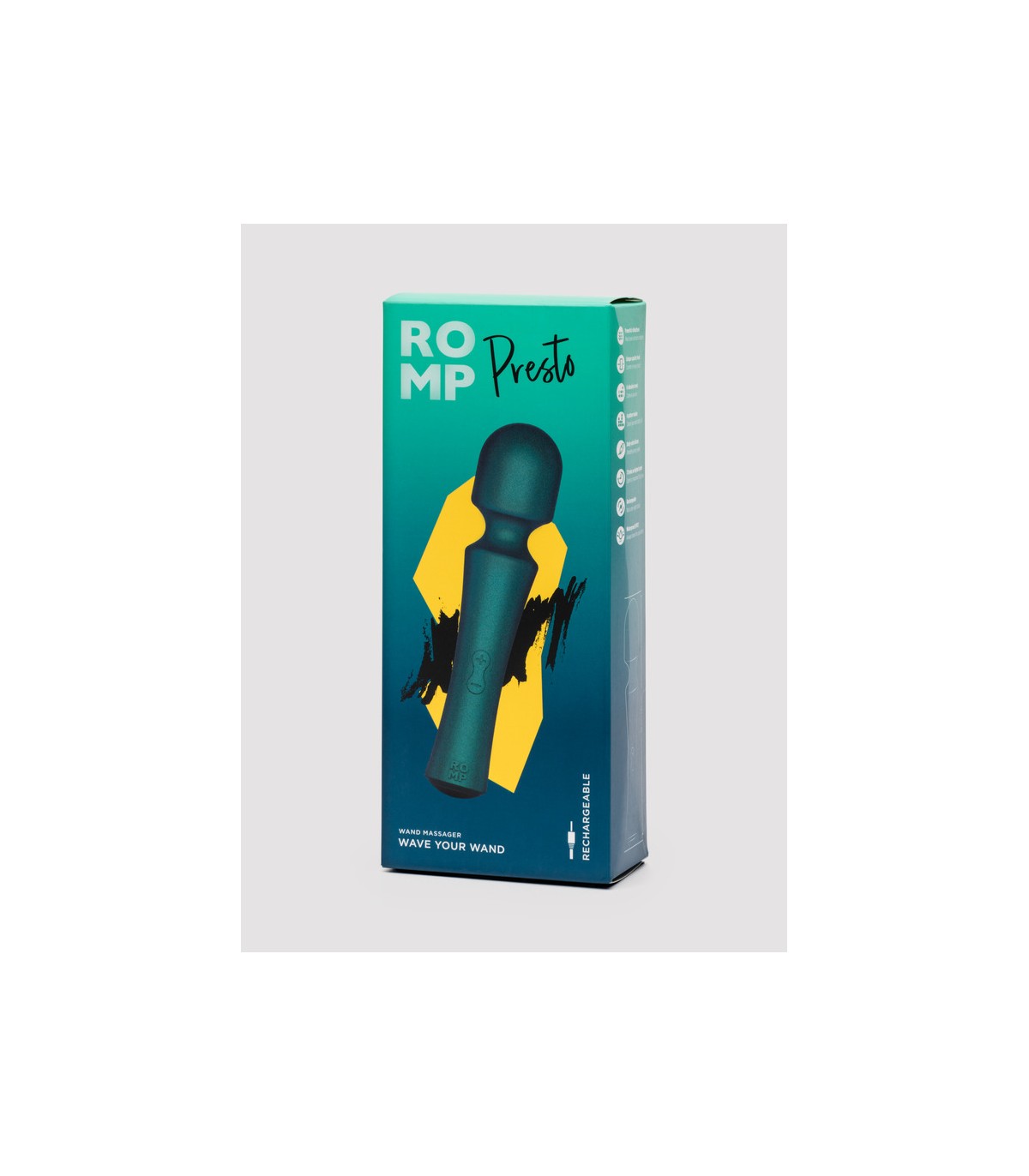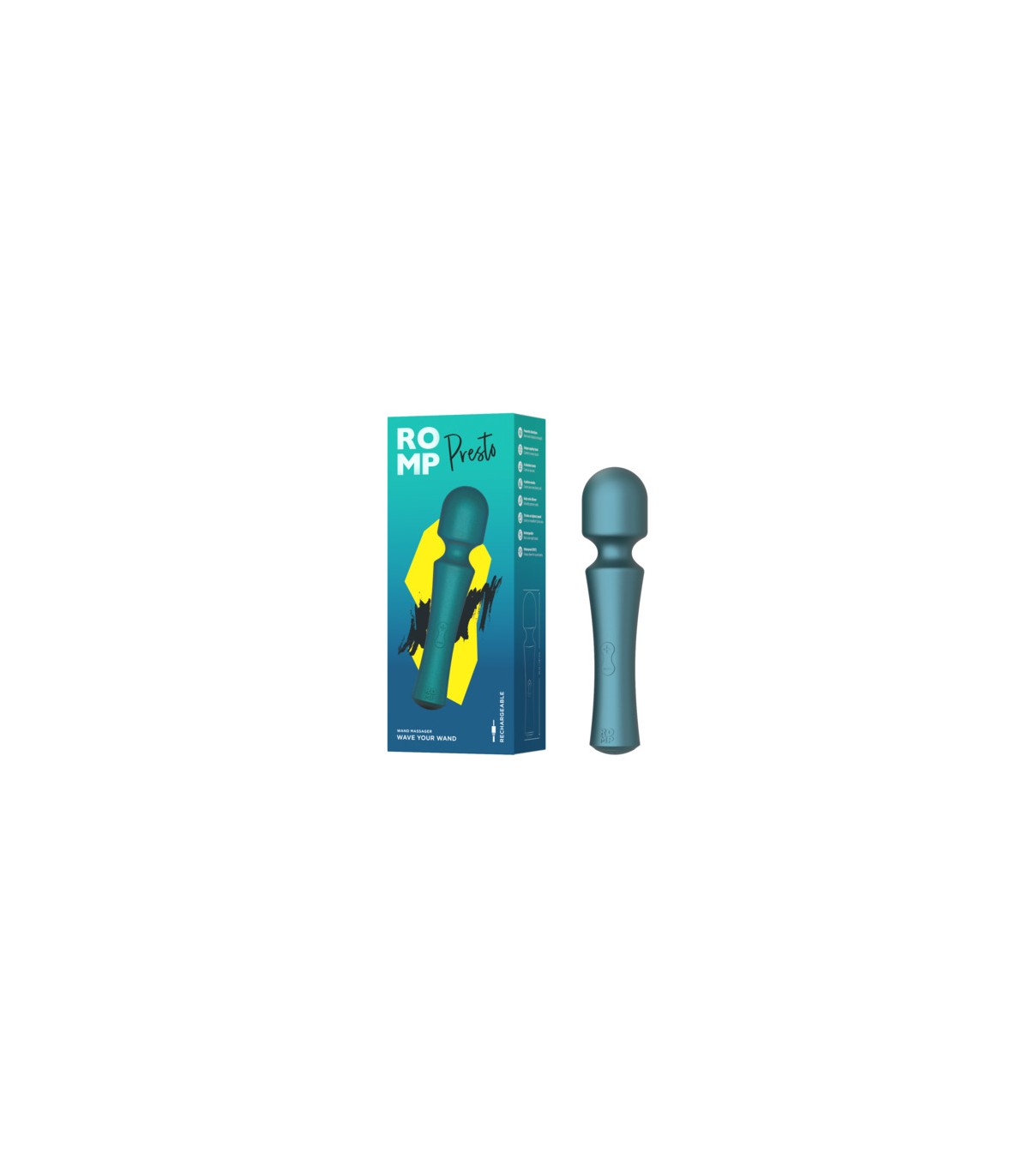 ROMP Presto es un minivibrador inalámbrico tipo Wand que hace magia. Con unas potentes vibraciones en 6 intensidades y 4 patrones de vibración, este vibrador te hace llegar al orgasmo con un solo toque de varita mágica. El cabezal de silicona suave y blando ofrece una estimulación versátil e intensa, perfecta para acertar en los puntos exactos. Resistente al agua, recargable y con bloqueo de viaje, ROMP Presto está diseñado para ofrecer comodidad y un inolvidable placer, tanto si lo disfrutas dentro como fuera del agua.