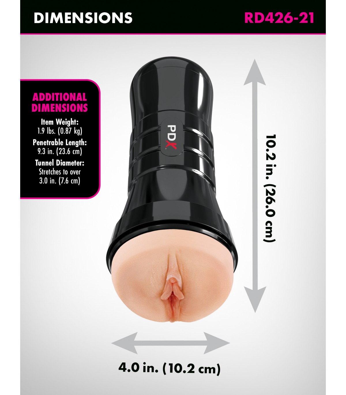 El Wet Pussies Super Stroker XXL cuenta con control de succión de precisión, por lo que puedes ajustar fácilmente el flujo de aire para personalizar tu experiencia apretando o aflojando la tapa trasera. También cuenta con un estuche EZ-Grip de gran tamaño que protege tu masturbador, actúa como almacenamiento discreto y fue diseñado para brindar comodidad y facilidad de manejo. ¡Así que deja de soñar con coños mojados y comienza a correrte en uno hoy mismo!