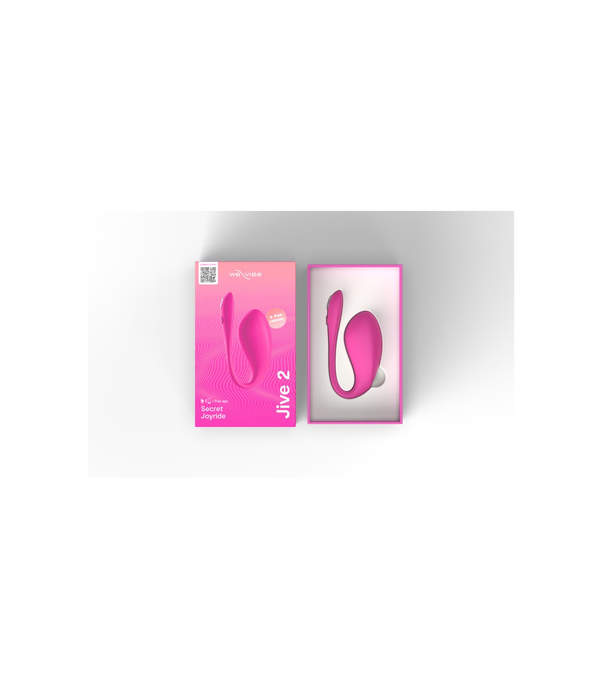 Jive 2 funciona con controles sencillos de un solo botón. Pulsa el botón de control para encenderlo, púlsalo de nuevo para recorrer los modos de vibración y los niveles de intensidad, y mantenlo pulsado para apagar el juguete. Jive 2 también se puede controlar con la app We-Vibe o el mando a distancia para disfrutar de un juego variado, incluso a distancia.