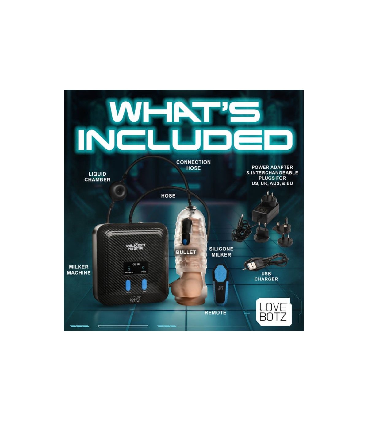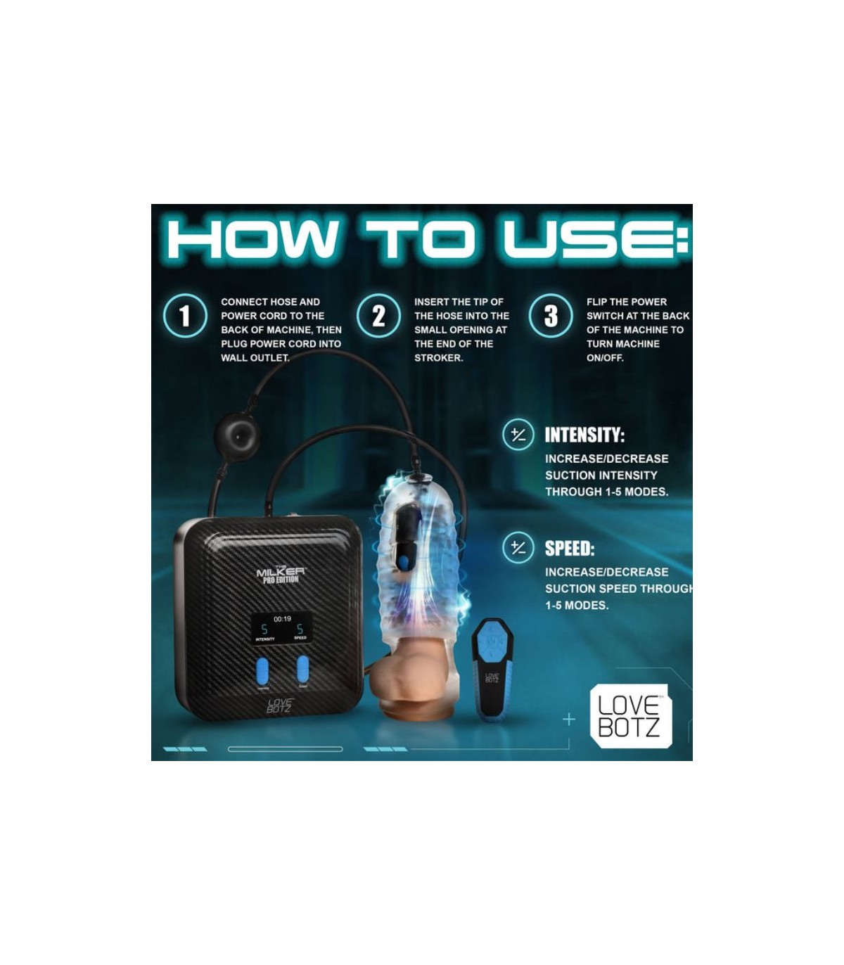 ¿Quieres sumergirte en horas de placer y aumentar tu resistencia sexual? ¡Este Milker Stamina es para ti! ¡Te mereces un placer con las manos libres que genere éxtasis y te mantenga al límite mientras te entrenas para largas noches de pasión! Con el intenso dispositivo Milker Stamina, puedes mejorar tu placer con nuestro avanzado ordeñador automático, diseñado para el máximo placer. Este sofisticado dispositivo incluye una funda de TPE con un anillo de seguridad que envuelve las bolas y actúa como un anillo en C, además de una poderosa bala recargable que vibra en 3 velocidades y 7 patrones y se desliza en un bolsillo al costado de la funda. Elija entre 5 velocidades y 5 patrones de succión para una experiencia alucinante con configuraciones que se ajustan fácilmente usando los grandes botones azules del dispositivo o mediante el control remoto que funciona con baterías. Vea qué configuración está explorando y lea fácilmente la brillante pantalla LED. La manguera de 46 pulgadas, equipada con una válvula circUlar, evita la entrada de líquido a la máquina. Ideal para trotamundos, viene con un adaptador de corriente y enchufes intercambiables para compatibilidad con EE. UU., Reino Unido, UE y Australia.