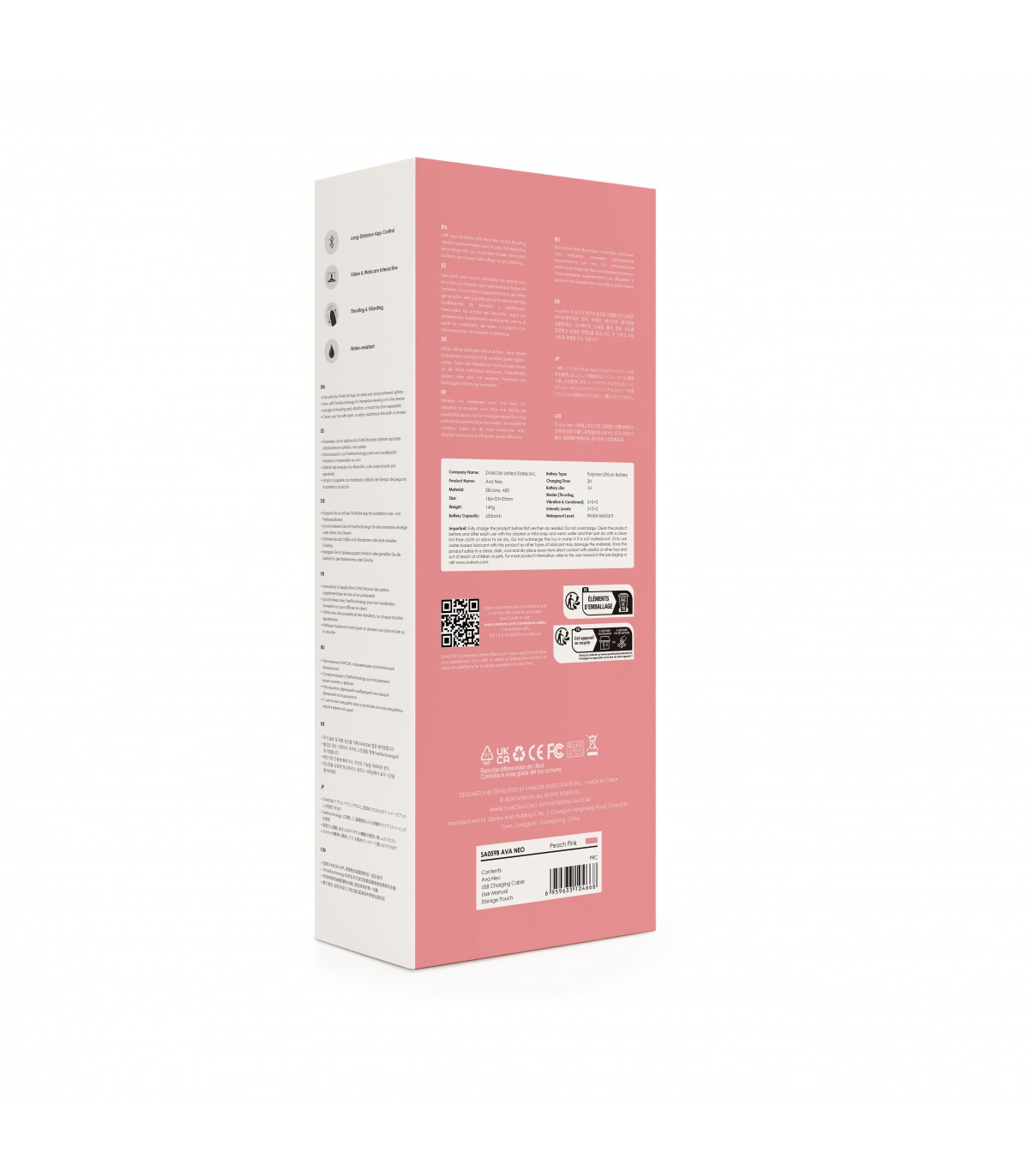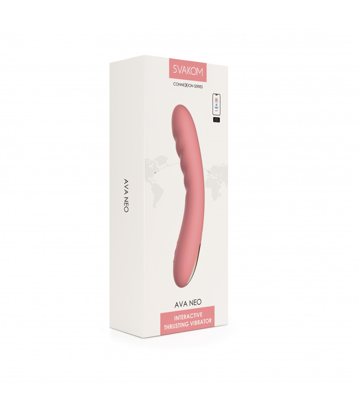 Como parte de la serie Connexion de SVAKOM, Ava Neo se sincroniza con la app FeelConnect para que puedas sentir el movimiento de contenido interactivo para adultos a través del juguete o disfrutar de sus funciones en plataformas de webcam.