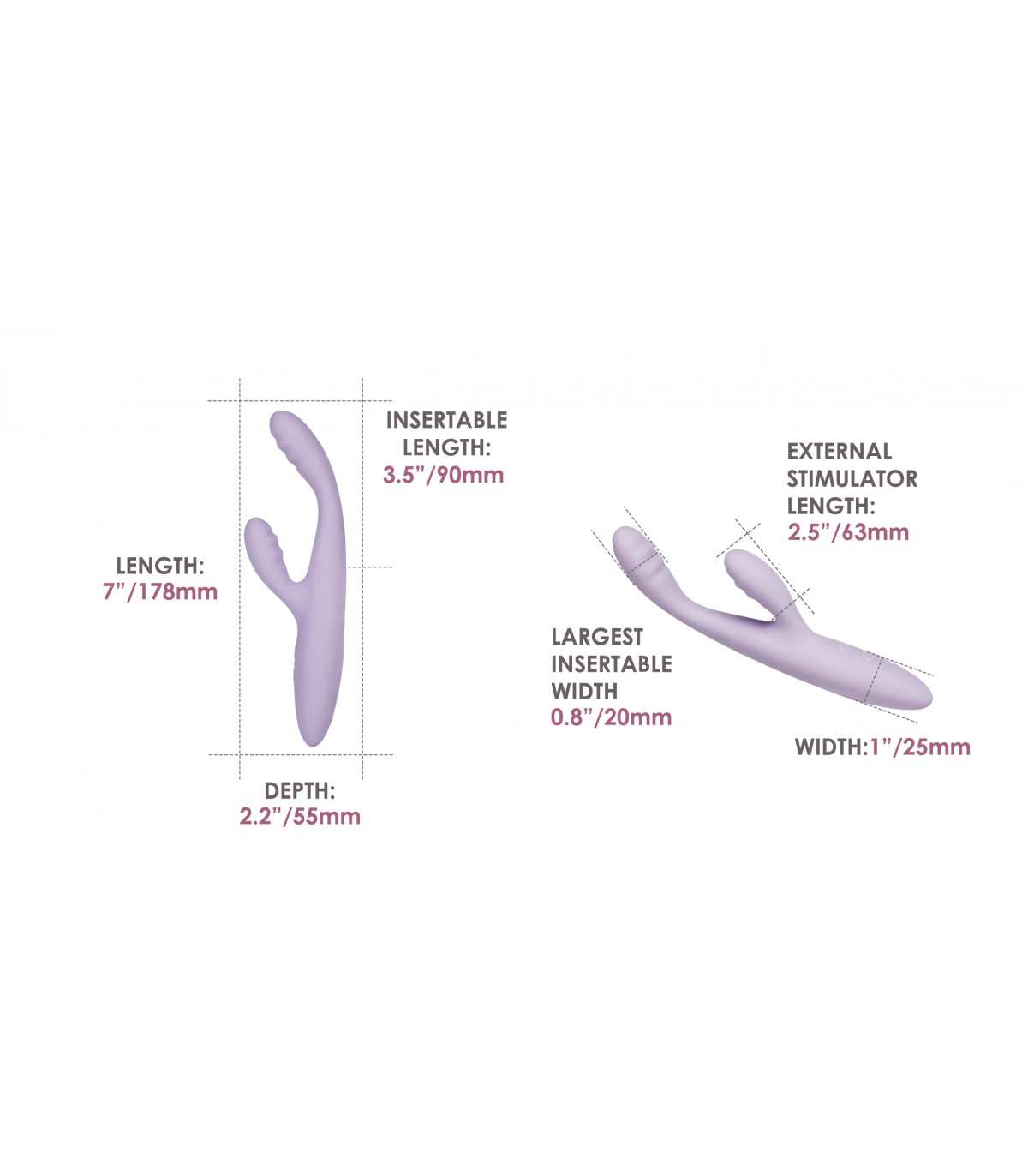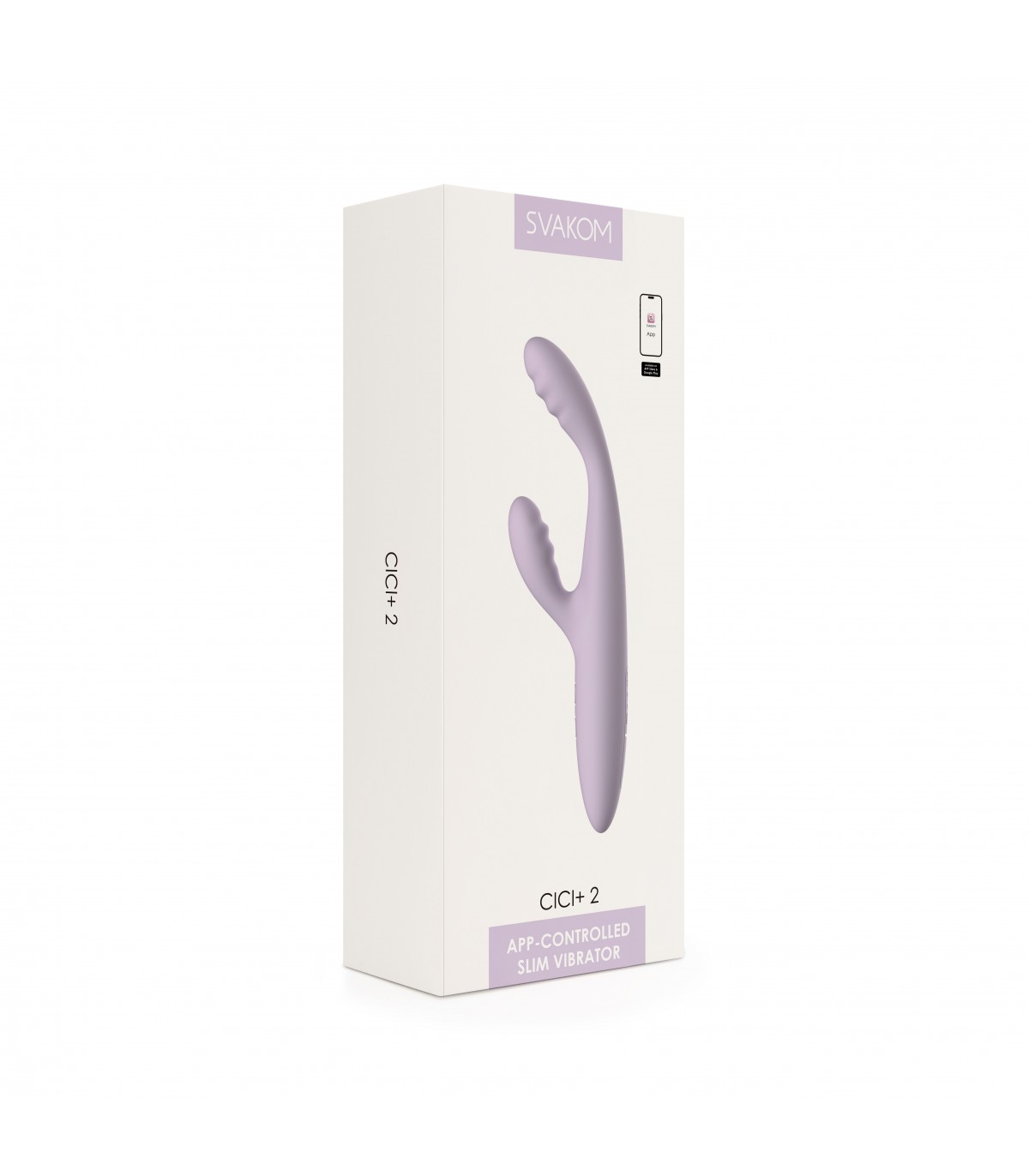 Da un salto adelante con Cici+ 2. Fabricado en silicona líquida, este vibrador conejito tiene un eje ultrafino y semiflexible que se adapta a cualquier nivel de experiencia, mientras que su cabezal angular presiona tu punto G y su estimulador de clítoris flexible duplican el placer. Prueba las vibraciones en 5 modos y 5 intensidades, y una excitante función de calor, dentro o fuera del agua. Usa la app SVAKOM para personalizar la configuración o disfrutar del control del juguete a distancia o la interacción con tu pareja.