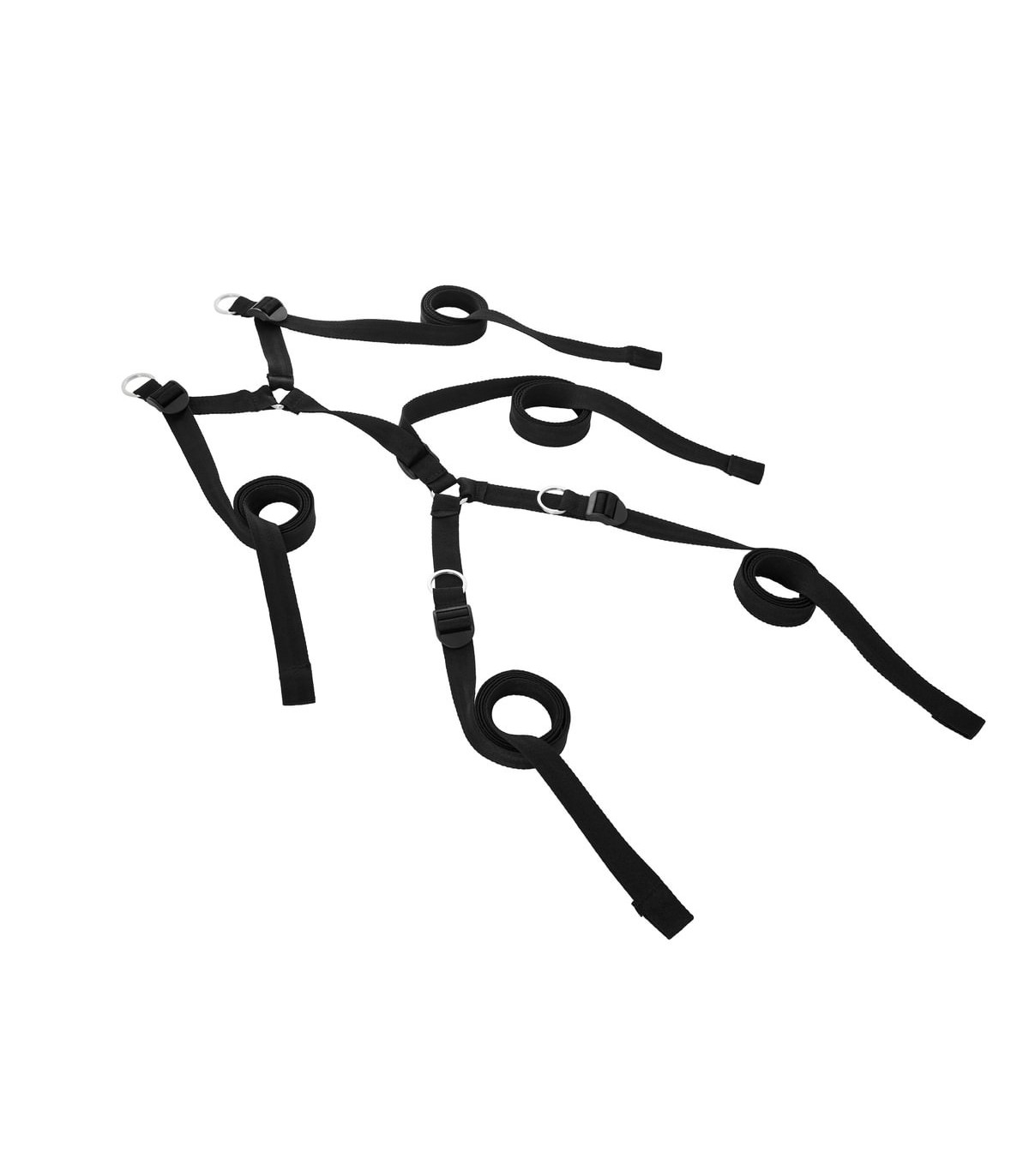 - 4 puños ajustables (se adaptan a muñecas de 4 a 12 pulgadas), cuatro correas de sujeción aseguradas a una correa de conexión que se ajusta de forma segura debajo de su colchón