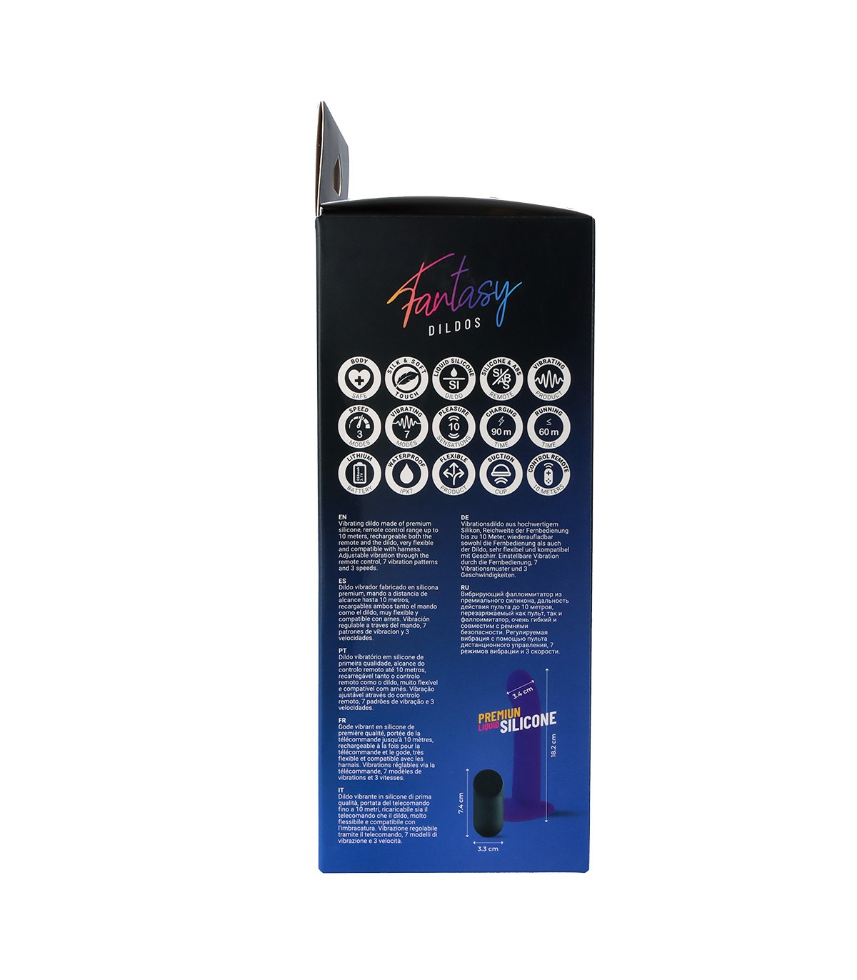 Dildo vibrador recargable realizado en silicona líquida con mando a distancia y ventosa.