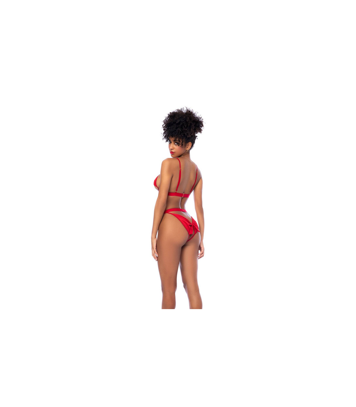 Serás el regalo más sexy de la temporada con este conjunto de dos piezas. Incluye top con copas abiertas y detalles de lazo, tirantes ajustables y braguita con lazo a juego.