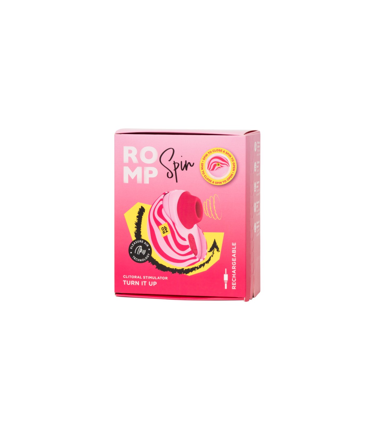 ROMP Spin es un juguete bonito y compacto para disfrutar en cualquier lugar. Su elegante funda protege su cabezal de succión y lo mantiene discreto para viajes.
