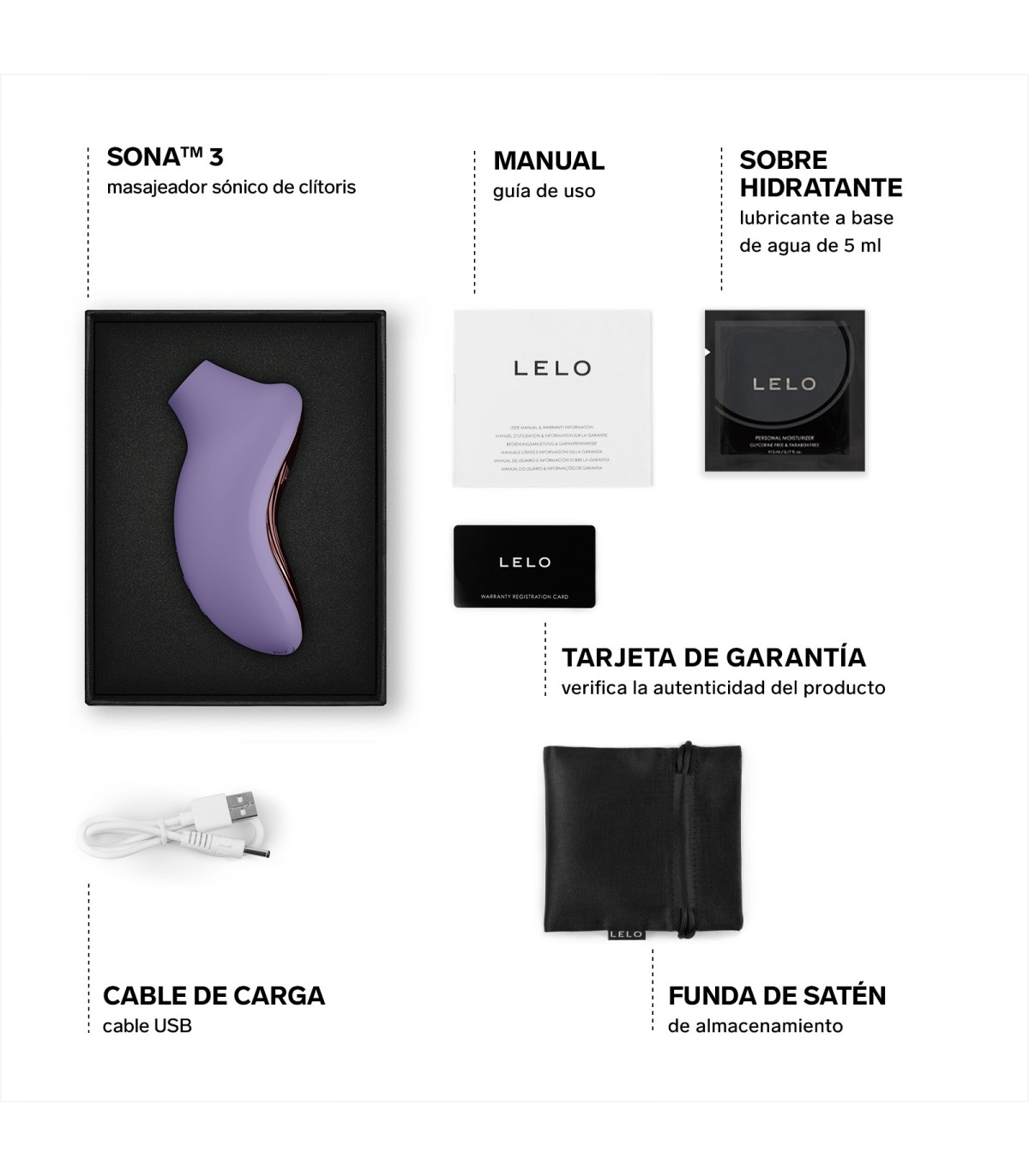 SONA™ 3 es un estimulador sónico de clítoris que cuenta con la tecnología SenSonic™, diez modos de placer y la nueva tecnología SmoothRise™, que te permite cambiar gradualmente el nivel de intensidad para ofrecerte el máximo confort. SONA™ 3, que ha sido fabricado con silicona supersuave para ofrecer una cómoda sensación, es perfecto para estimular el clítoris de forma precisa y puede emparejarse con la aplicación LELO™, con la que podrás acceder a dos modos adicionales y a la función «Love Bridge», que te permitirá disfrutar con tu pareja a larga distancia.