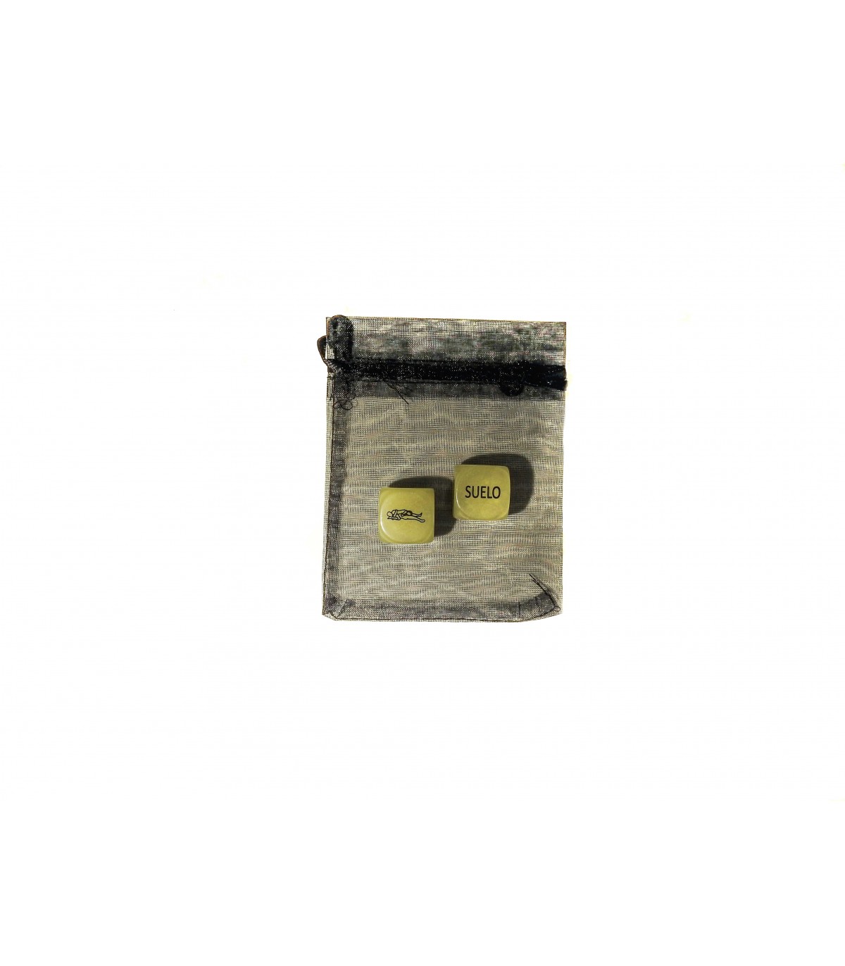 Set formado por dos dados fosforescentes en la oscuridad. Un dado contiene la acción y el otro el lugar del cuerpo. Vienen presentados en una bolsita negra.