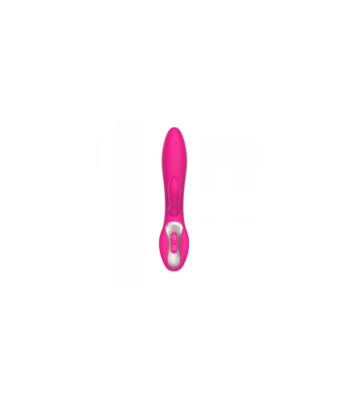 - Vibrador con estimulador de clítoris realizado en silicona suave y sedosa con 9 intensidades diferentes.