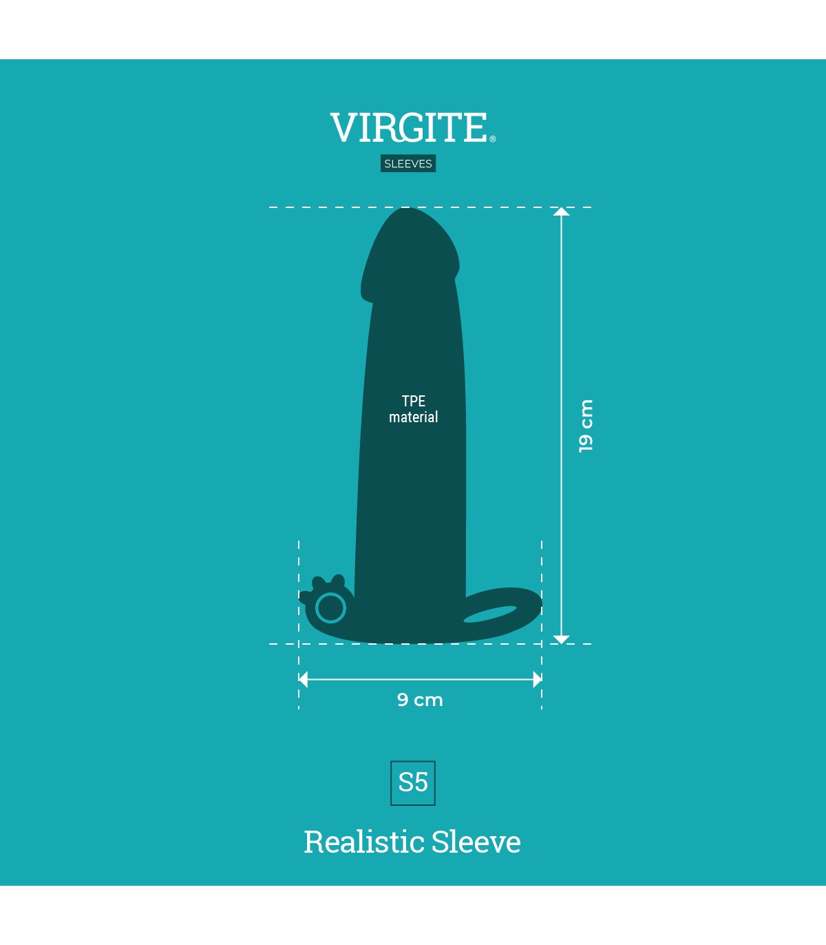 Funda realística para pene realizada en TPE. Se adapta al pene gracias a su flexibilidad.