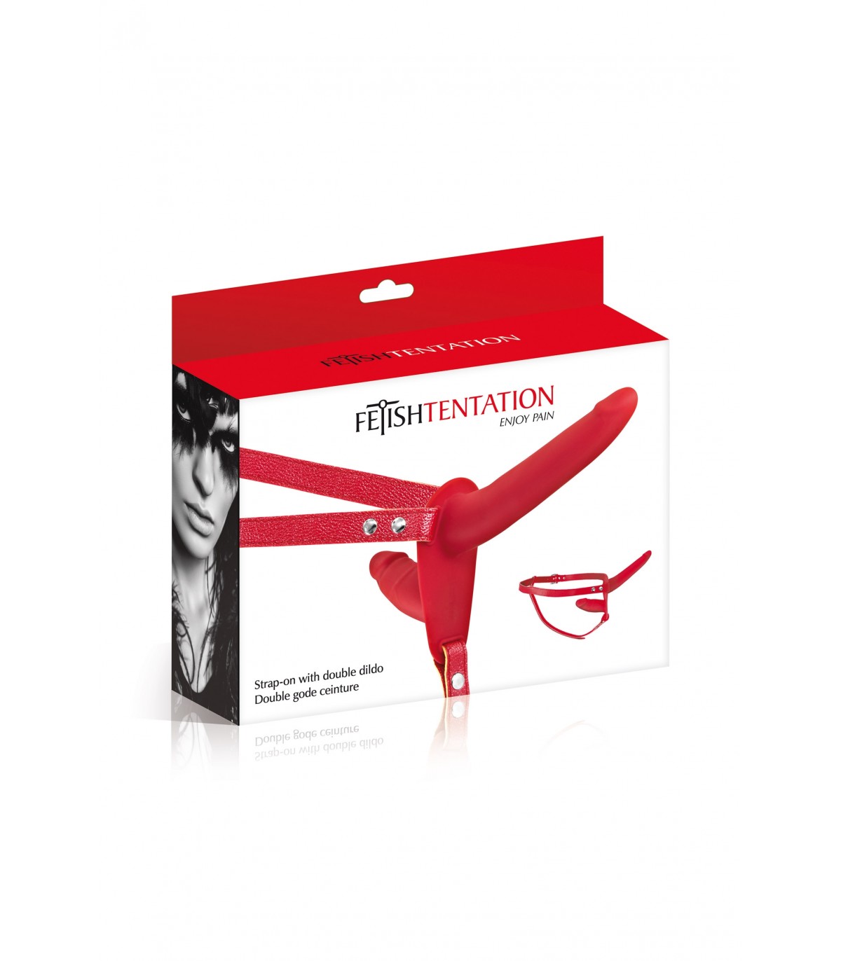 ARNÉS STRAP-ON DOBLE ROJO SILICONA 15"5 CM