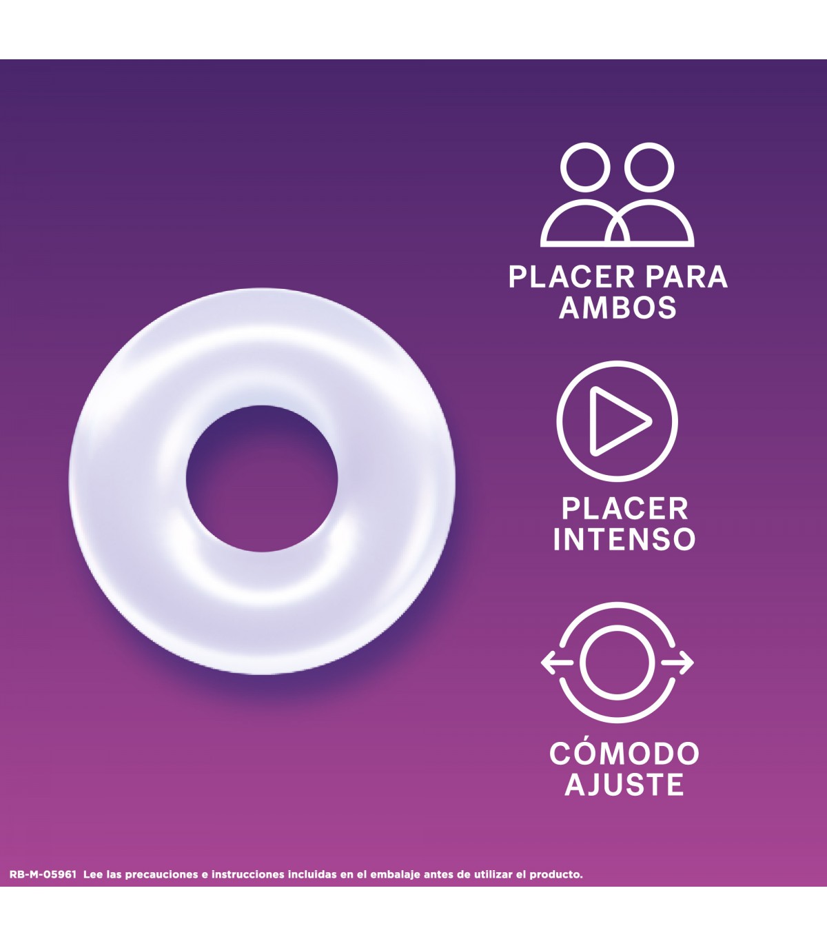 El nuevo Anillo de Placer Durex ha sido diseñado para ayudar a mantener una erección más firme durante más tiempo e intensificar el placer de ambos. Es un anillo muy elástico y discreto y se puede utilizar con o sin preservativo estándar. Simplemente colócalo en la base del pene para proporcionar un cómodo ajuste.