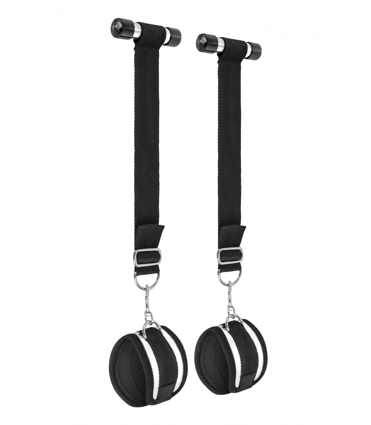 Esposas con velcro ajustables para colocar sobre la puerta. Termina en unas pesas que impide que la esposa se suelte de la puerta.