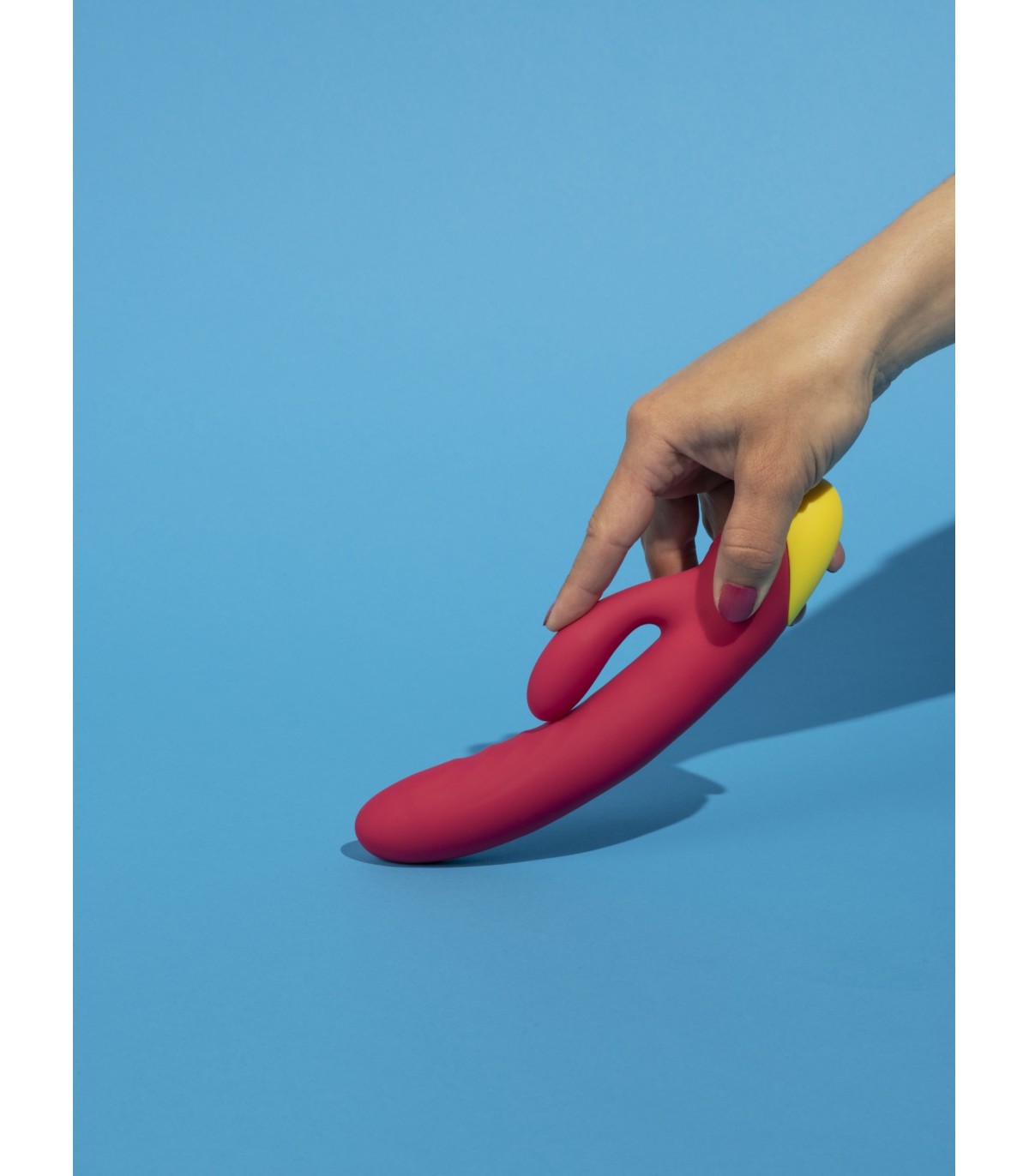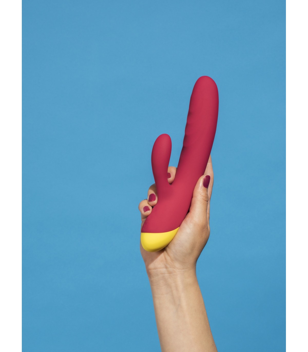 Vibrador con estimulador de clítoris recargable realizado en silicona muy suave.