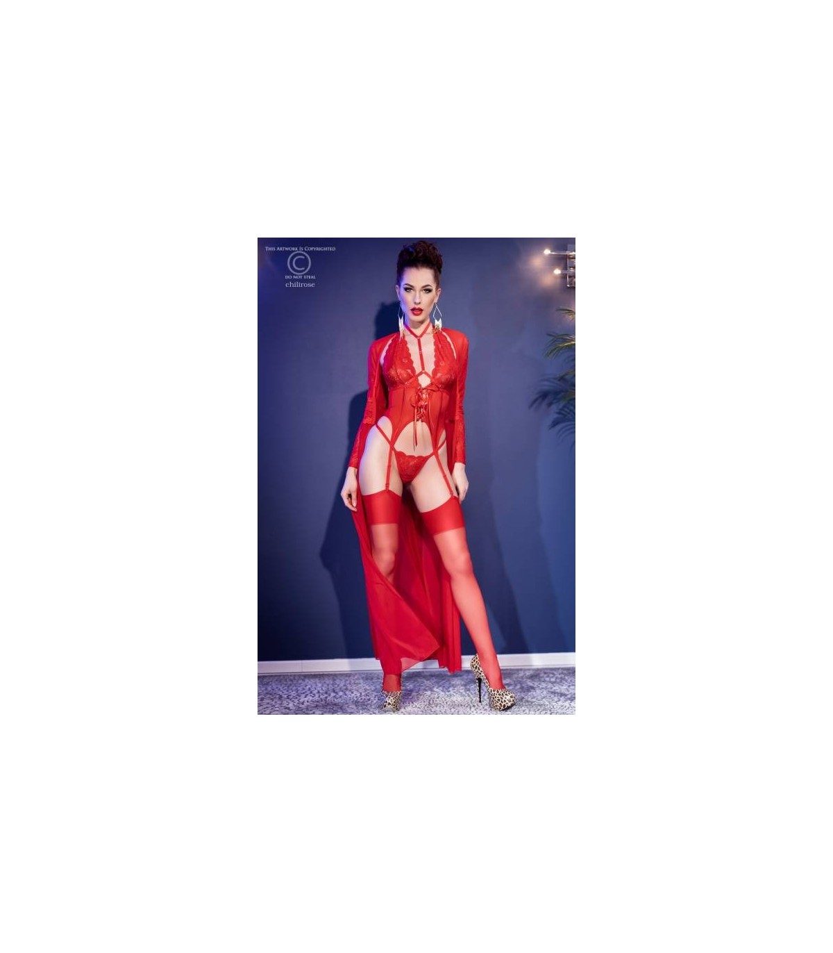 CR4419 BODY CON TANGA Y MEDIAS ROJO S