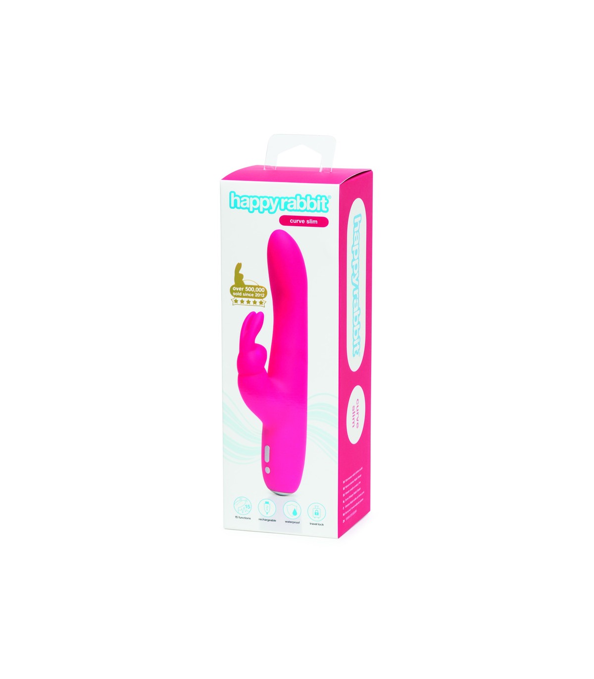 El Slimline Curve de Happy Rabbit® tiene la misma forma y configuración que su pariente grande, pero con un eje más fino. Un vibrador conejito ideal para principiantes y quien guste de una penetración más holgada y una estimulación del clítoris intensa.