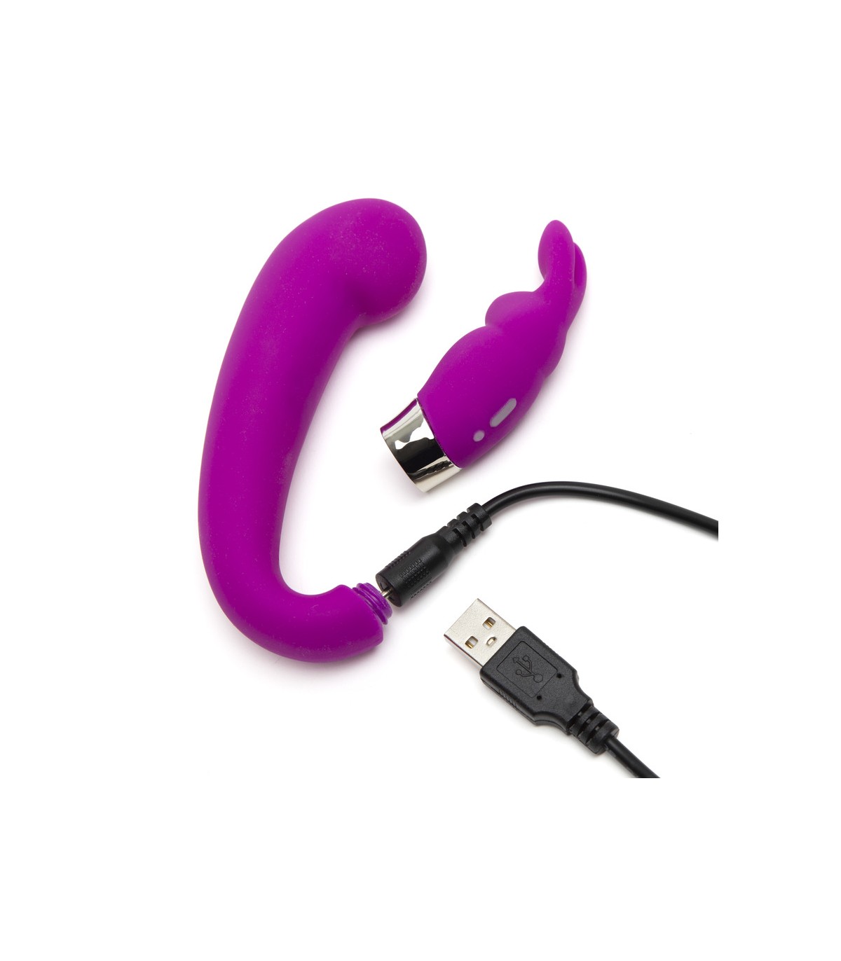 Vibrador doble con estimulador con forma de orejitas realizado en silicona muy suave recargable.