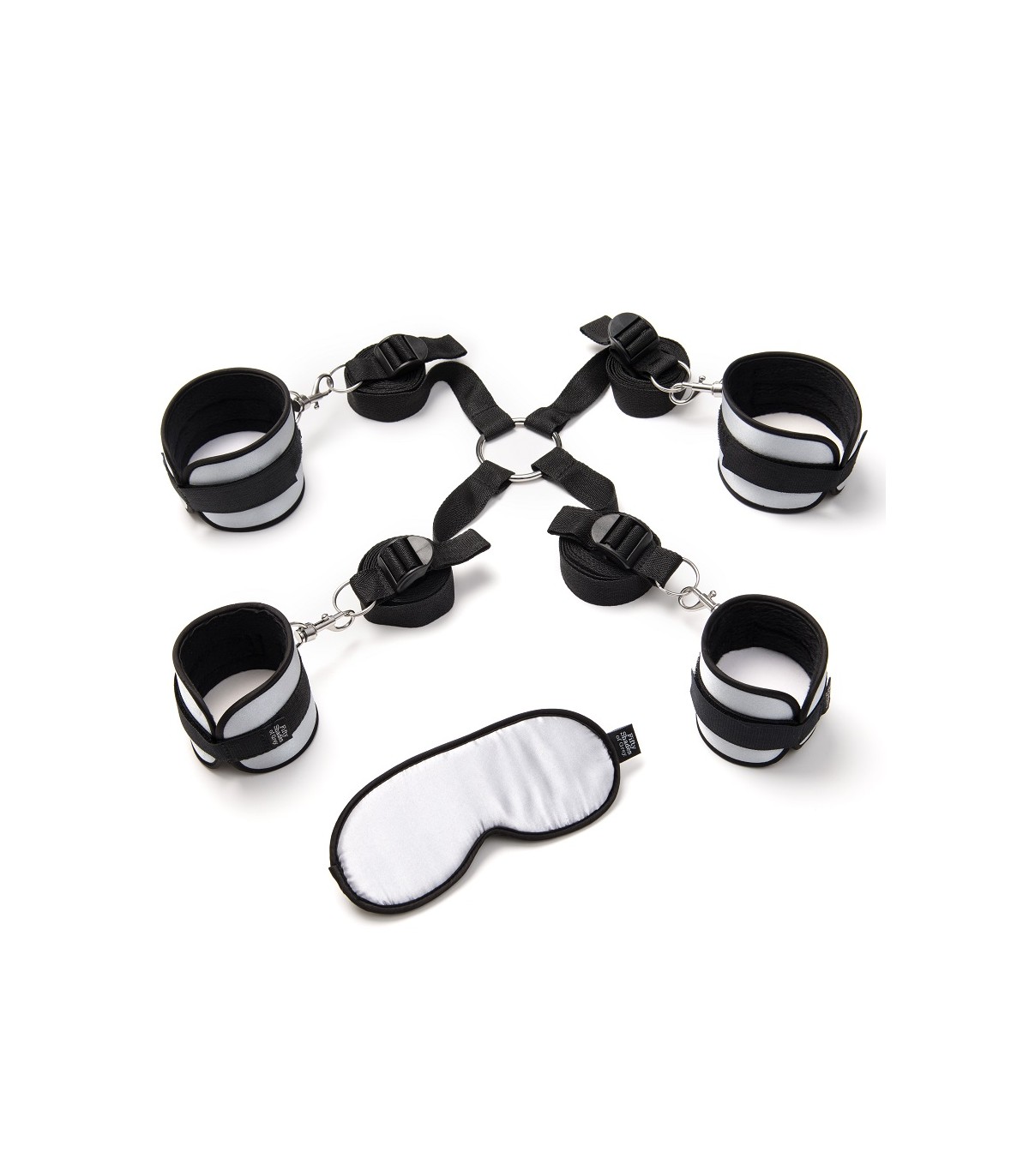Las 4 suaves esposas con ataduras de Velcro hacen que la restricción de cuerpo entero resulte un trabajo ligero mientras que el suave antifaz incluido en el kit restringe la visión de tu amante para una sumisión total.