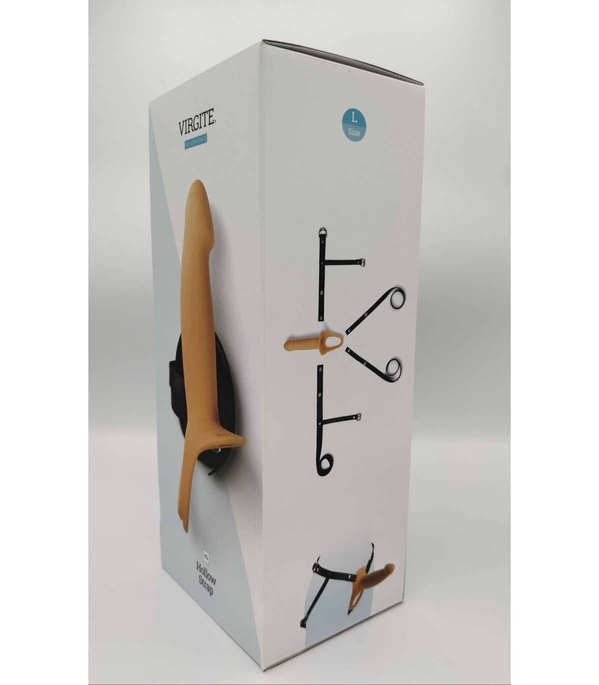 Arnés hueco para colocar el pene dentro realizado 100% en silicona. Gracias a su tacto suave, se sentirá como si fuera una penetración real. Además, incorpora una cavidad para meter los testículos para una mayor sujección.