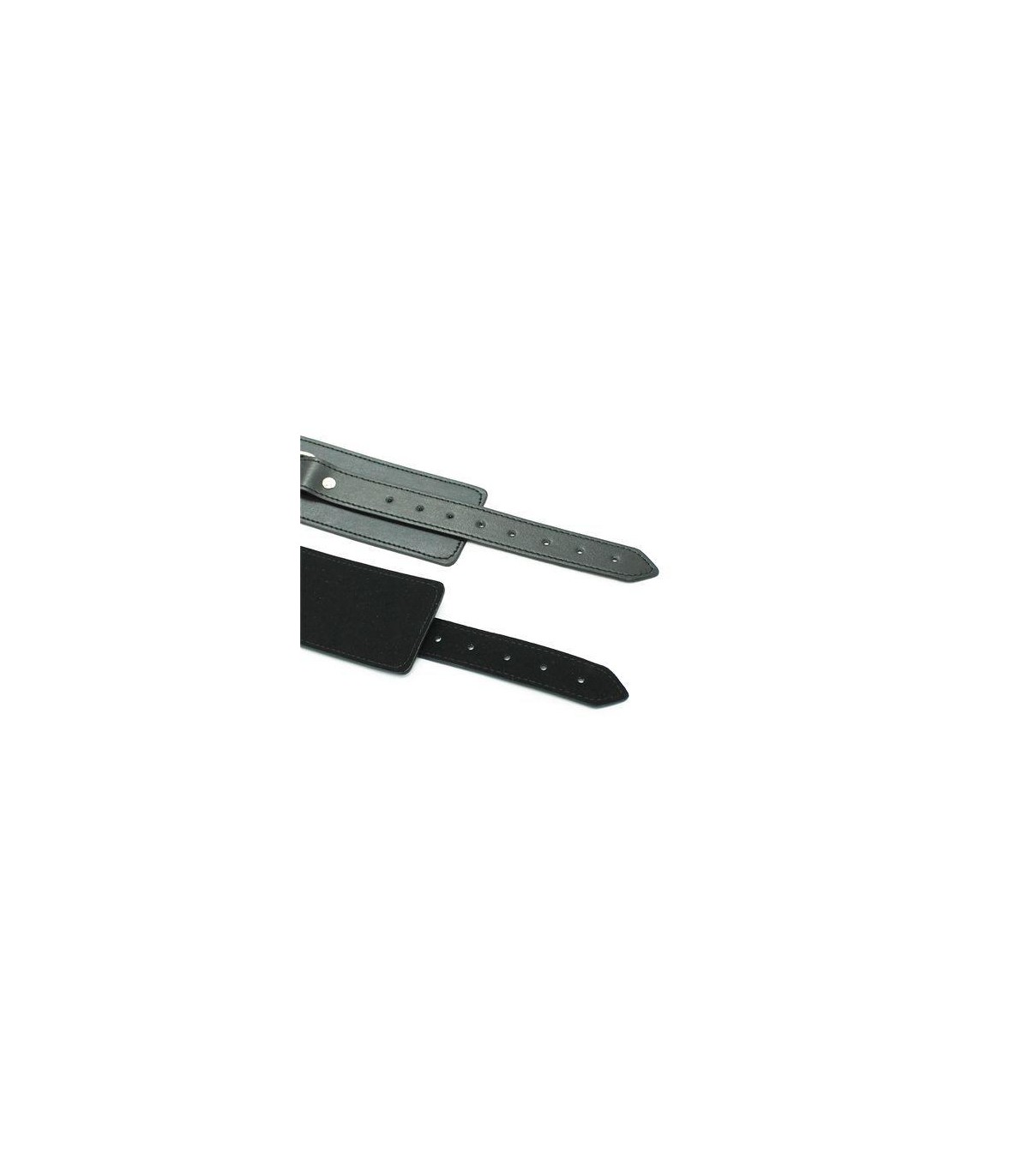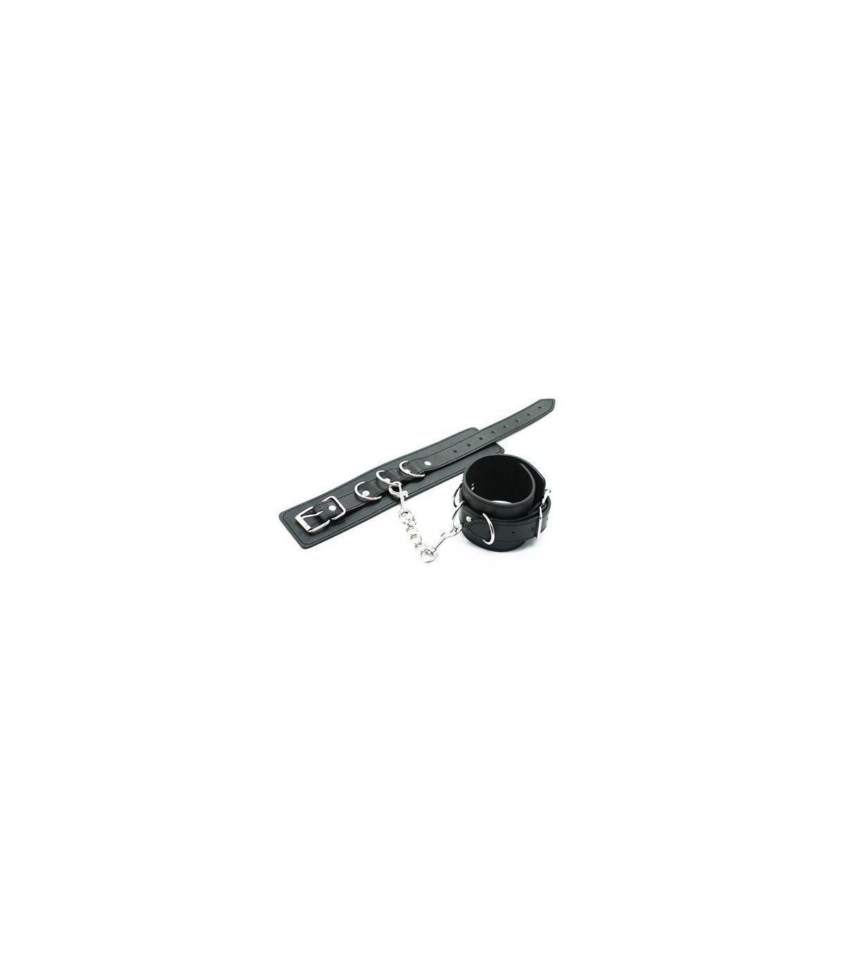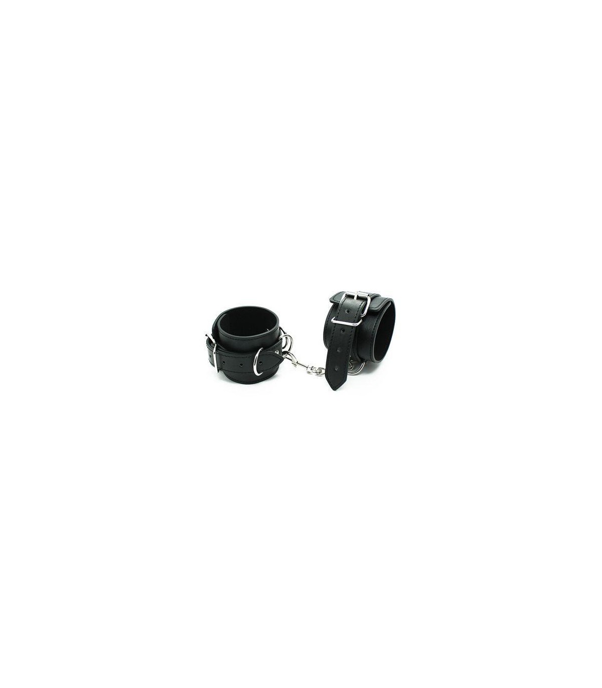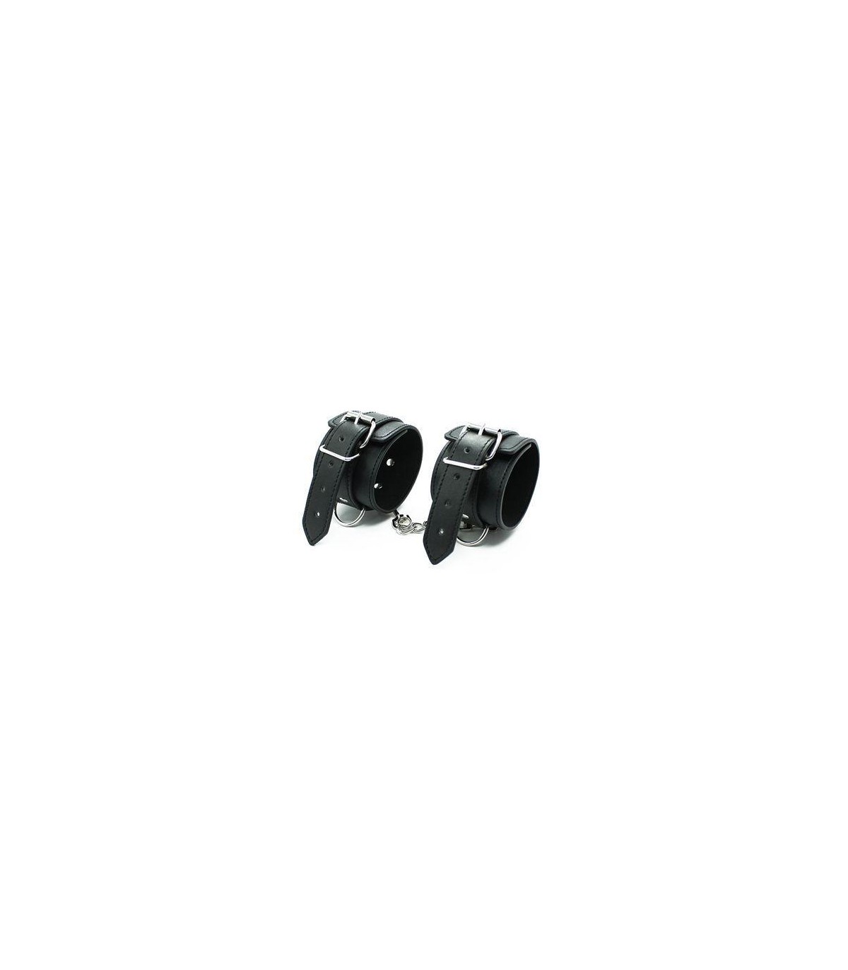 Esposas negras realizadas en polipiel muy suave para muñecas o tobillos con hebilla completamente ajustables.