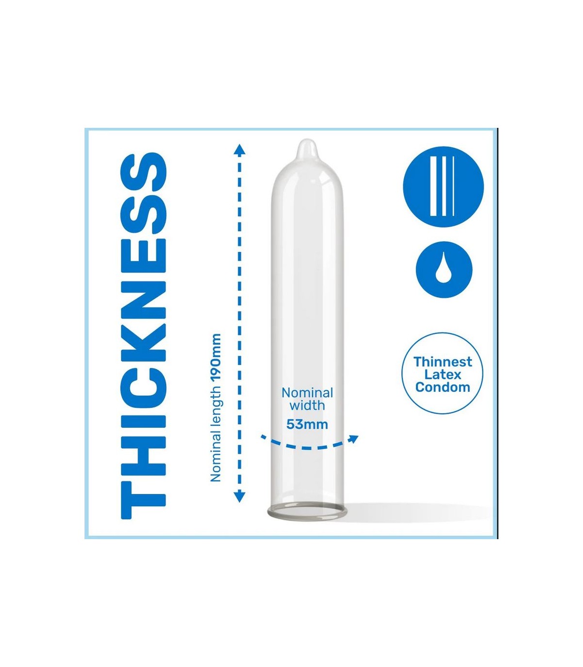 Silk Thin™ es el condón de látex más delgado de Pasante y tiene hasta la mitad del grosor del condón normal de Pasante*. Con solo 40 a 45 micrones de grosor, Silk Thin™ ofrece a ambos miembros de la pareja la experiencia sexual más cercana a ese sentimiento real. Preservativos lisos, paralelos, de color natural y con punta de tetina. Silk Thin mide 190 mm de largo y 53 mm de ancho.