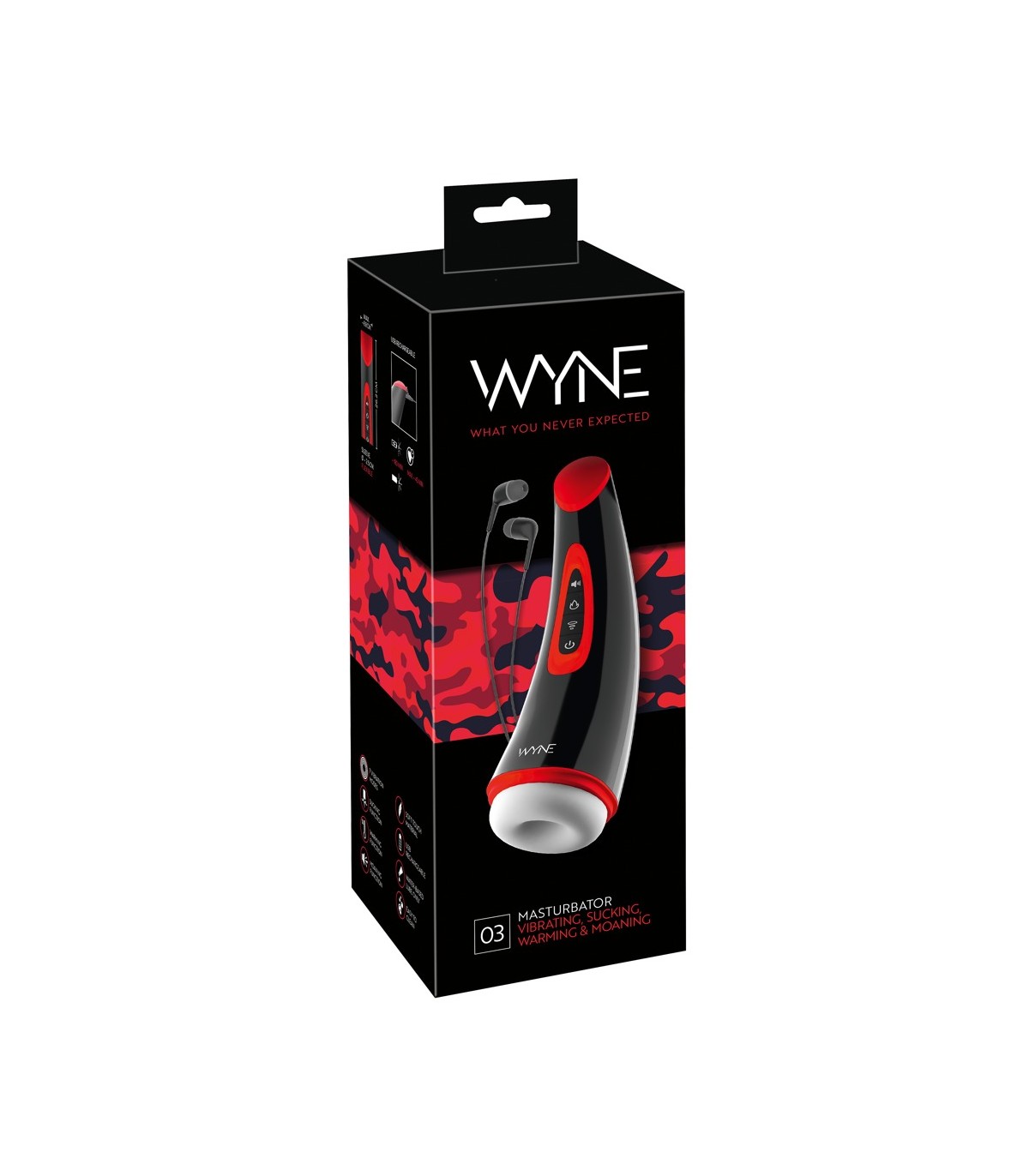 Masturbateur puissant WYNE 03 qui dorlote intensément le pénis de manière entièrement automatique avec 7 modes de vibration et 3 modes d'aspiration. De plus, il dispose d'une fonction de chauffage jusqu'à 40°C et de gémissements sensuels (3 sons) via les écouteurs inclus pour vous mettre dans l'ambiance. Toutes les fonctions peuvent être contrôlées séparément et facilement en appuyant sur un bouton directement sur le jouet pratique.