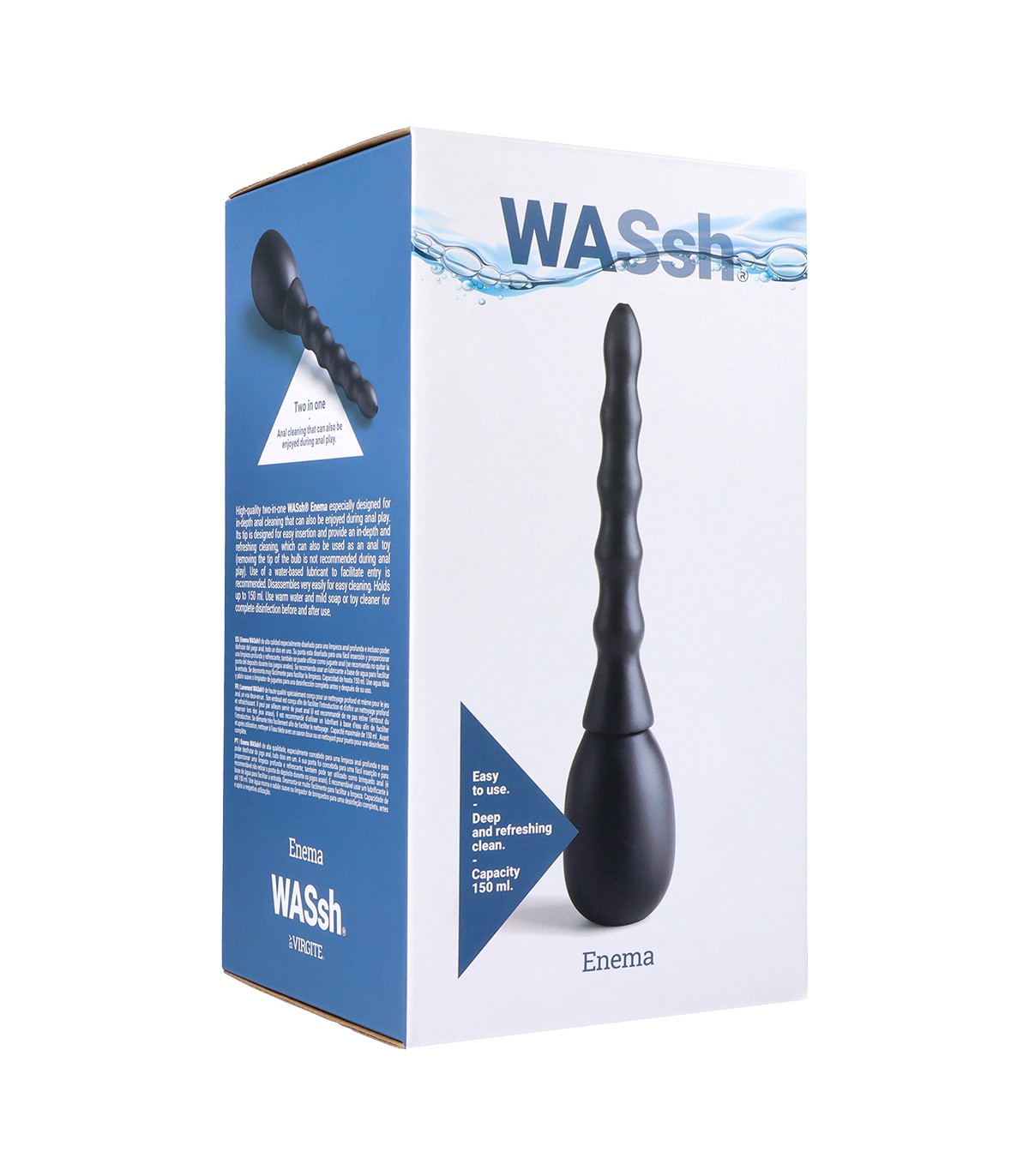 Obtenez un nettoyage anal optimal avec la gamme de lavements Wash. En fonction du jeu auquel vous allez jouer, vous pouvez choisir la taille et la capacité du lavement.