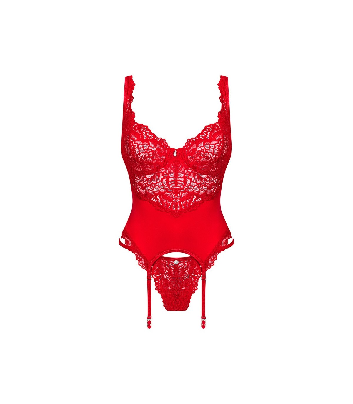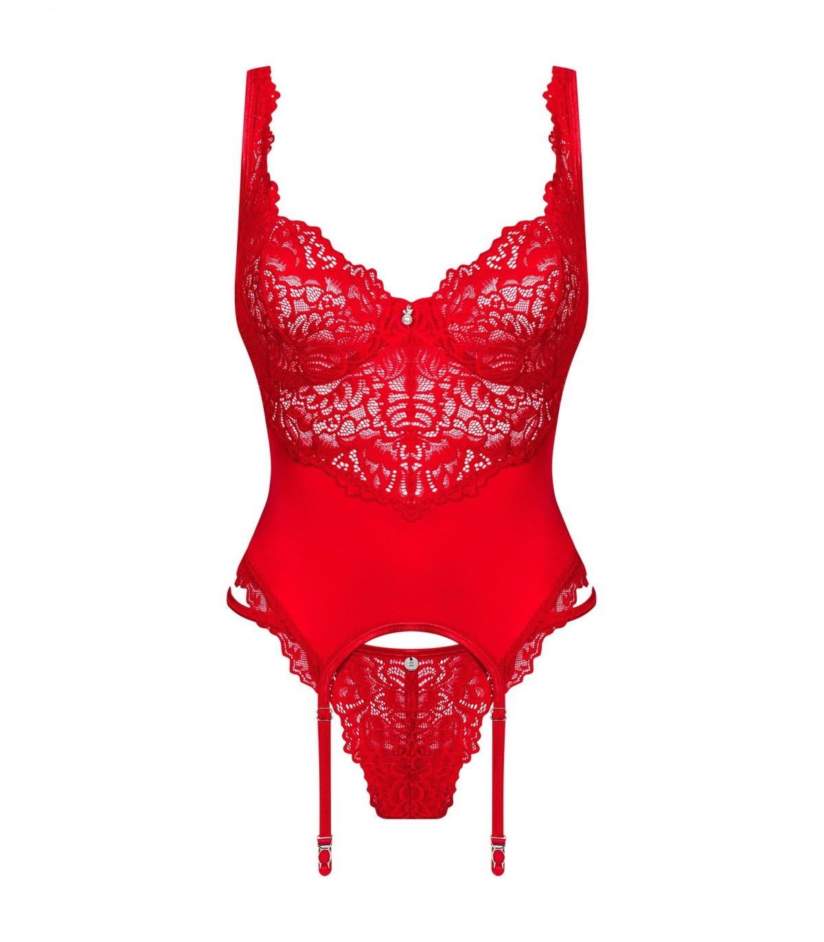 Il suffit d’un simple coup d’œil pour comprendre pourquoi la lingerie rouge est considérée comme extrêmement sexy. Le corset Amor Cherris est une combinaison chaude de tissu doux avec des empiècements en dentelle qui vous fera vous sentir confiante et féminine. La coupe classique épousera votre corps, mettant en valeur la forme de vos hanches et de vos fesses. Cet ensemble alléchant est complété par des bretelles réglables pour que vous puissiez tenir vos collants préférés. Essayez-le par vous-même :