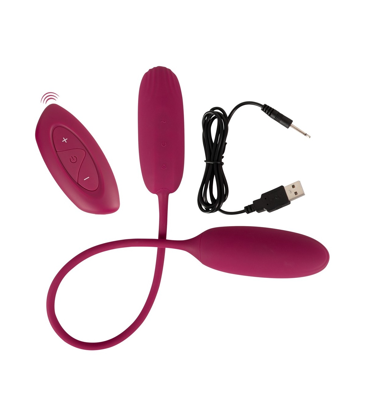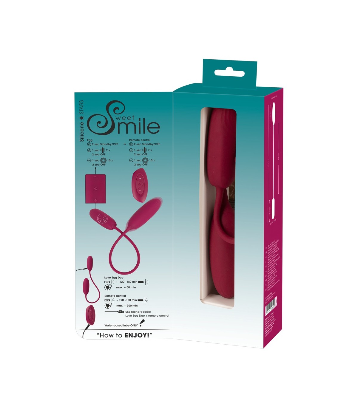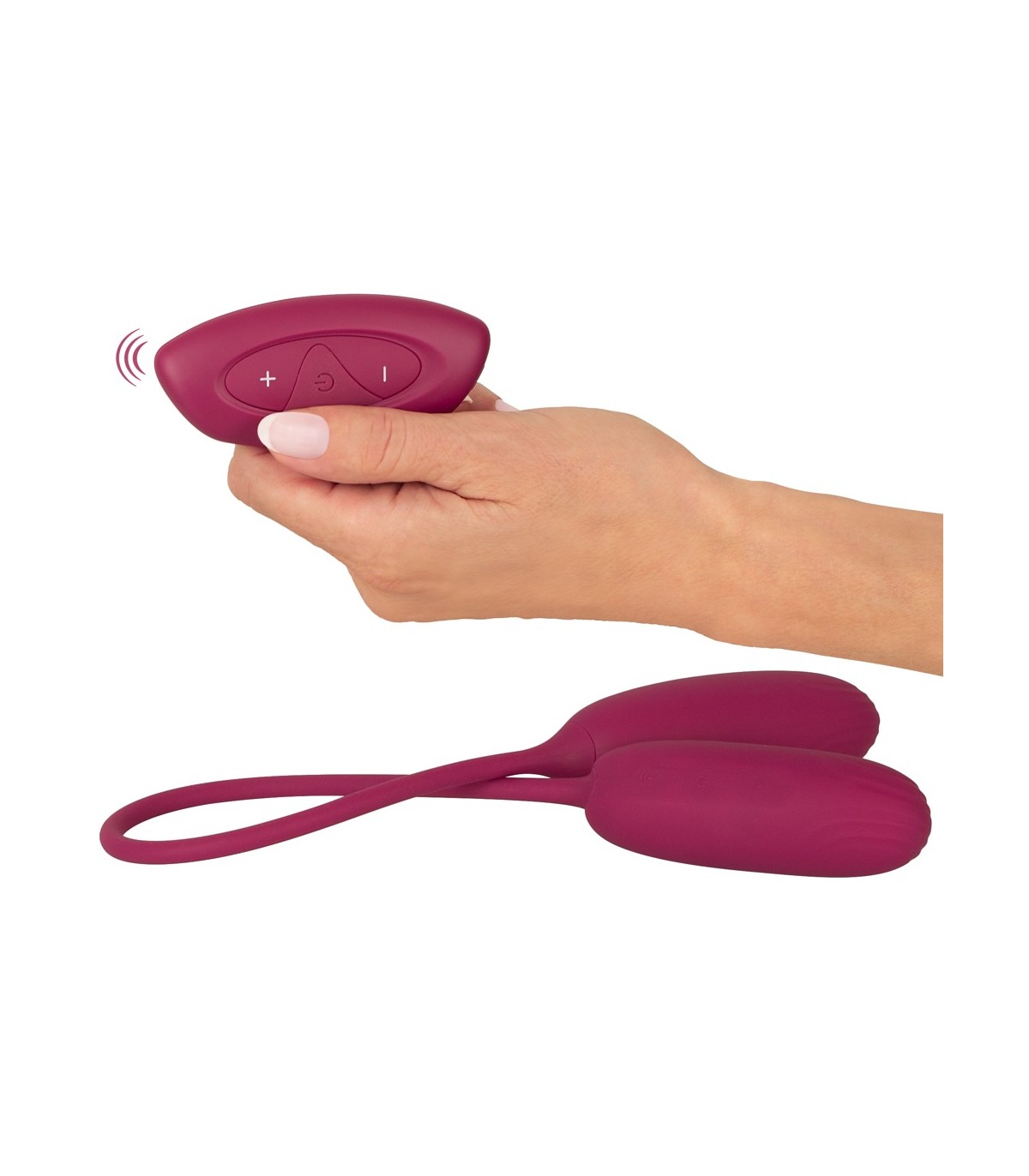 Le RC Shaking & Vibrating Love Egg Duo de Sweet Smile surprend avec 2 balles puissantes qui se connectent à un bracelet en silicone flexible de 31 cm de long. Une balle tremble et palpite, l'autre vibre. Ainsi, une stimulation vaginale/anale simultanée ou externe/interne est facilement possible pendant le jeu en solo, ainsi qu'une double stimulation sophistiquée lorsque vous jouez avec un partenaire.