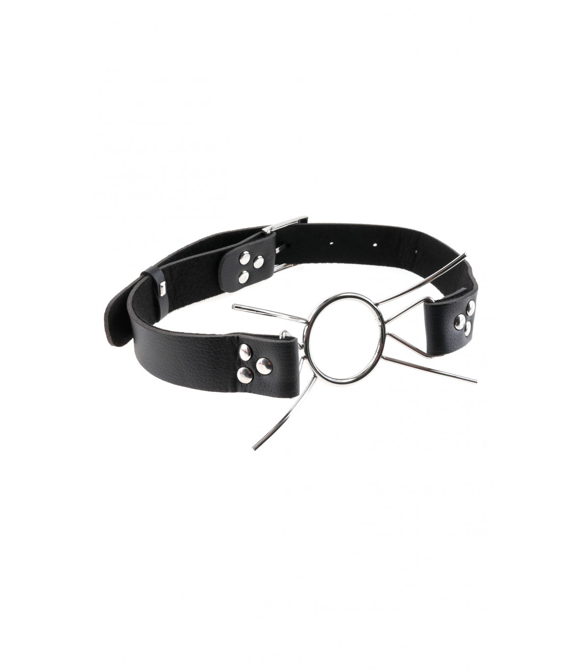 Cette mâchoire extrême est constituée d'un anneau en acier avec quatre « pattes » métalliques courbées fixées à l'anneau. La mâchoire et les pattes empêchent la bouche de se fermer, laissant la bouche du sujet complètement ouverte pour tout ce que vous voulez y mettre.