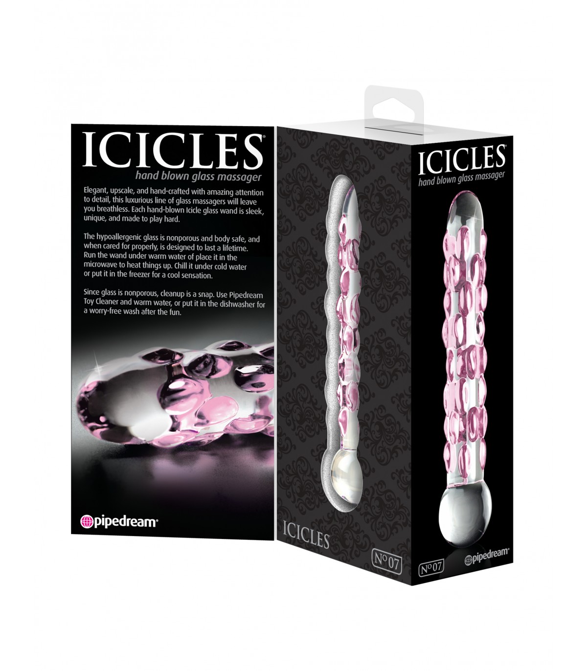 Élégante, luxueuse et fabriquée à la main avec une incroyable attention aux détails, cette luxueuse gamme de masseurs en verre vous coupera le souffle. Chaque baguette en verre Icicle soufflée à la bouche est élégante, unique et conçue pour un jeu intense. Le verre hypoallergénique est non poreux et sans danger pour le corps, et s'il est correctement entretenu, il est conçu pour durer toute une vie.
