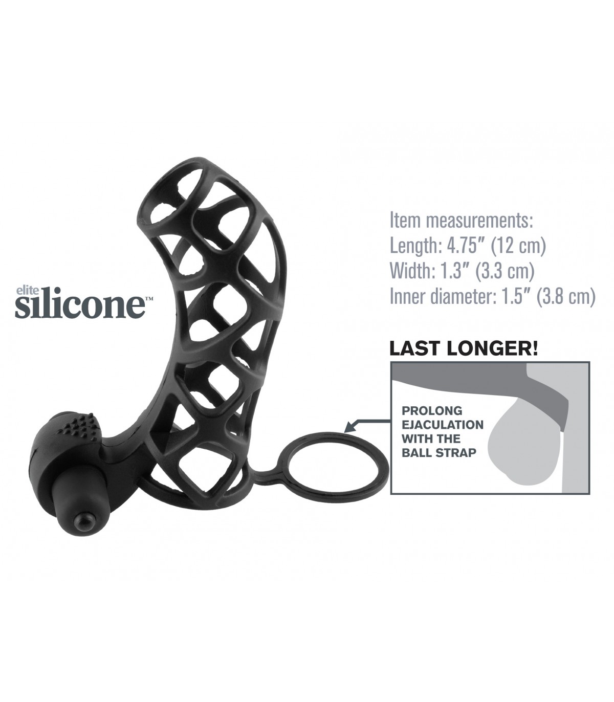 L’Extreme Silicone Power Cage est le stimulateur d’érection ultime ! Avec cette cage pénienne qui enveloppe confortablement chaque centimètre carré de votre membre, vous maintiendrez des érections dures comme de la pierre et prolongerez le plaisir tout en stimulant votre partenaire. La sangle testiculaire prolonge l'éjaculation pour des orgasmes explosifs, tandis que la cage laisse votre pénis ouvert pour ressentir toutes les sensations et continuer à profiter du contact naturel de votre amoureux. Vous profiterez d'érections épaisses et lancinantes et votre partenaire adorera les sensations supplémentaires de la cage. Le stimulateur clitoridien vibrant procure une stimulation directe de votre point le plus sensible. D'un simple clic sur le puissant microvibrateur étanche, vous la ferez jouir plus fort que jamais !