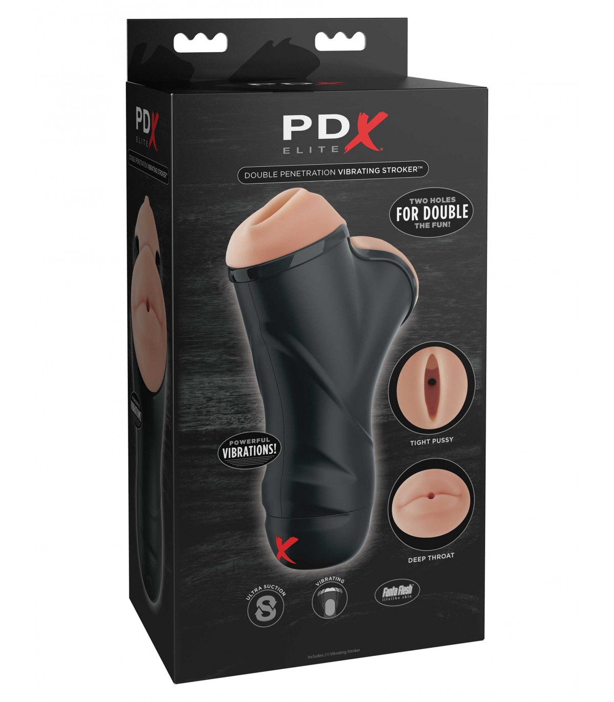 Profitez du meilleur des deux mondes avec une chatte serrée et excitante et l'expérience ultime de sexe oral en gorge profonde ! Courbé de manière unique pour ressembler à une gorge et une chatte réalistes, le masturbateur vibrant à double pénétration PDX ELITE® est recouvert de Fanta Flesh® ultra-réaliste pour l'expérience de masturbation la plus réaliste possible.