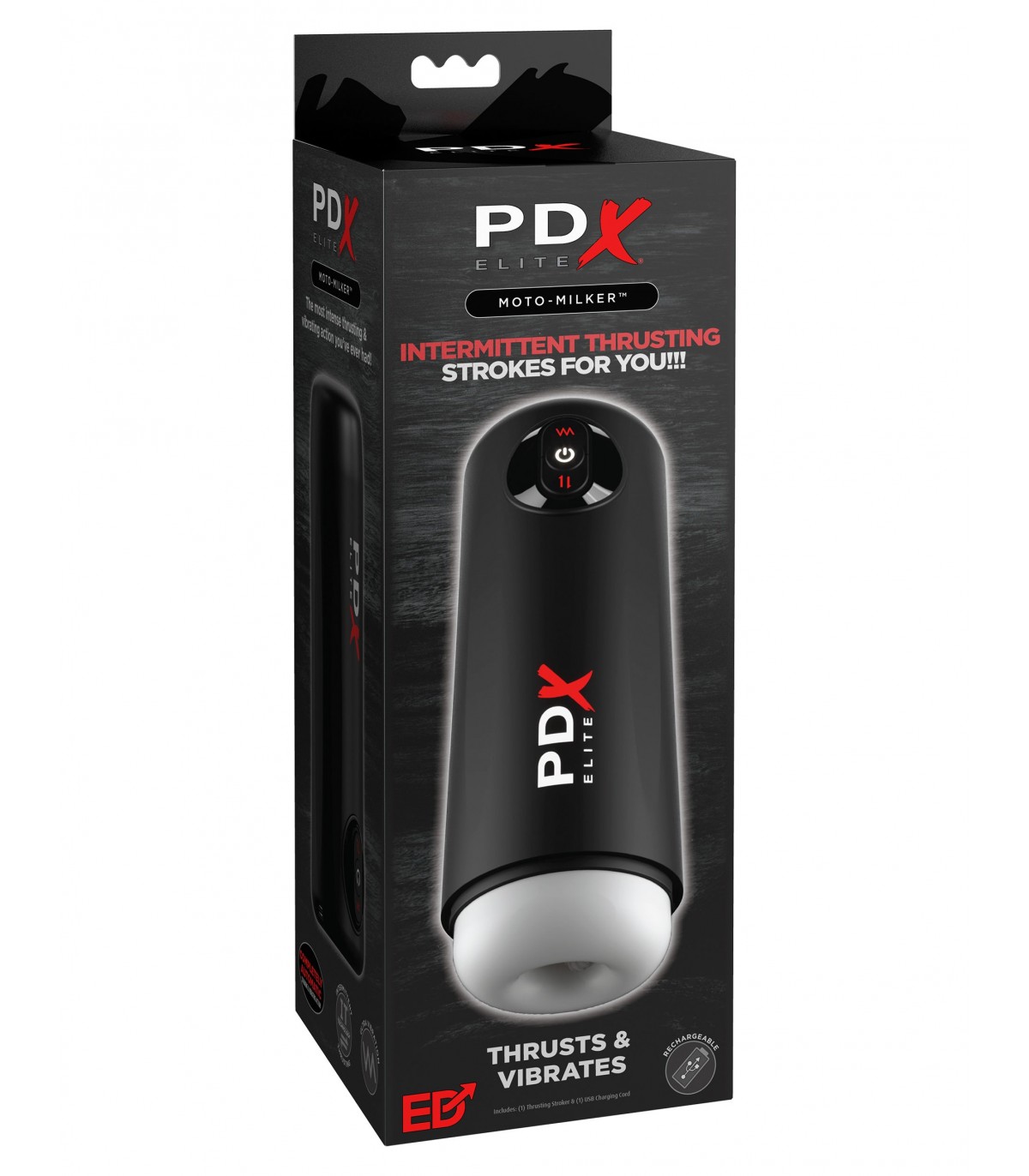 Le PDX ELITE® MOTO-MILKER™ élève la masturbation avec de puissantes poussées intermittentes pour une expérience de masturbation ultime. C'est une tempête de sensations parfaite pour des séances de sexe en solo intensifiées qui peuvent être personnalisées selon votre humeur personnelle ! Préparez-vous à des poussées explosives et mains libres qui encerclent votre pénis avec une action de caresse automatique ultra-douce ! Votre meilleure expérience de masturbation est prête quand vous l'êtes !