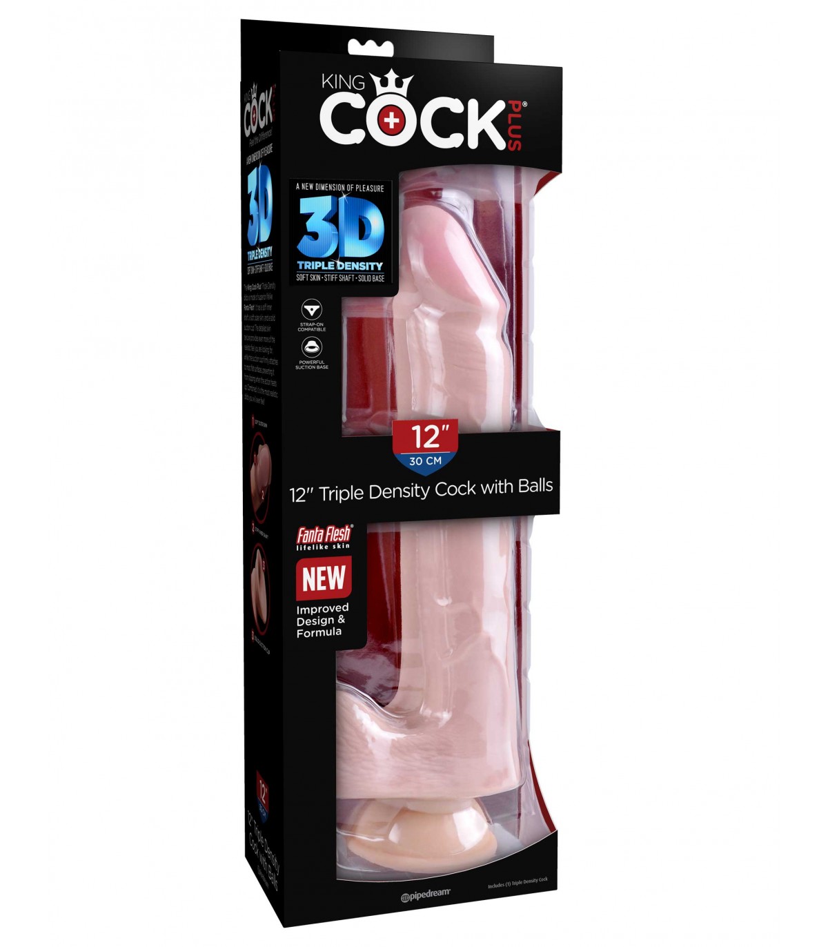 Le pénis triple densité King Cock® Plus 12" avec testicules est fabriqué avec le nouveau matériau Fanta Flesh® amélioré, le rendant rigide à l'intérieur et doux à l'extérieur. La peau extérieure réaliste est douce au toucher, tandis que la tige intérieure est rigide et érigé comme un vrai pénis, rendant votre expérience de plaisir aussi réelle que possible.