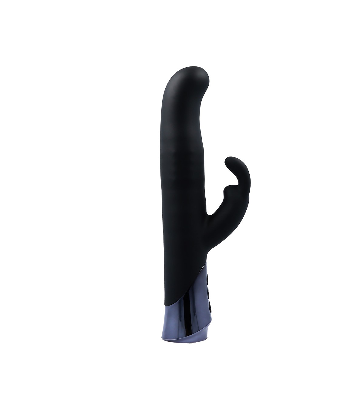 Stimulateur vibrant double en silicone et rechargeable par câble magnétique.