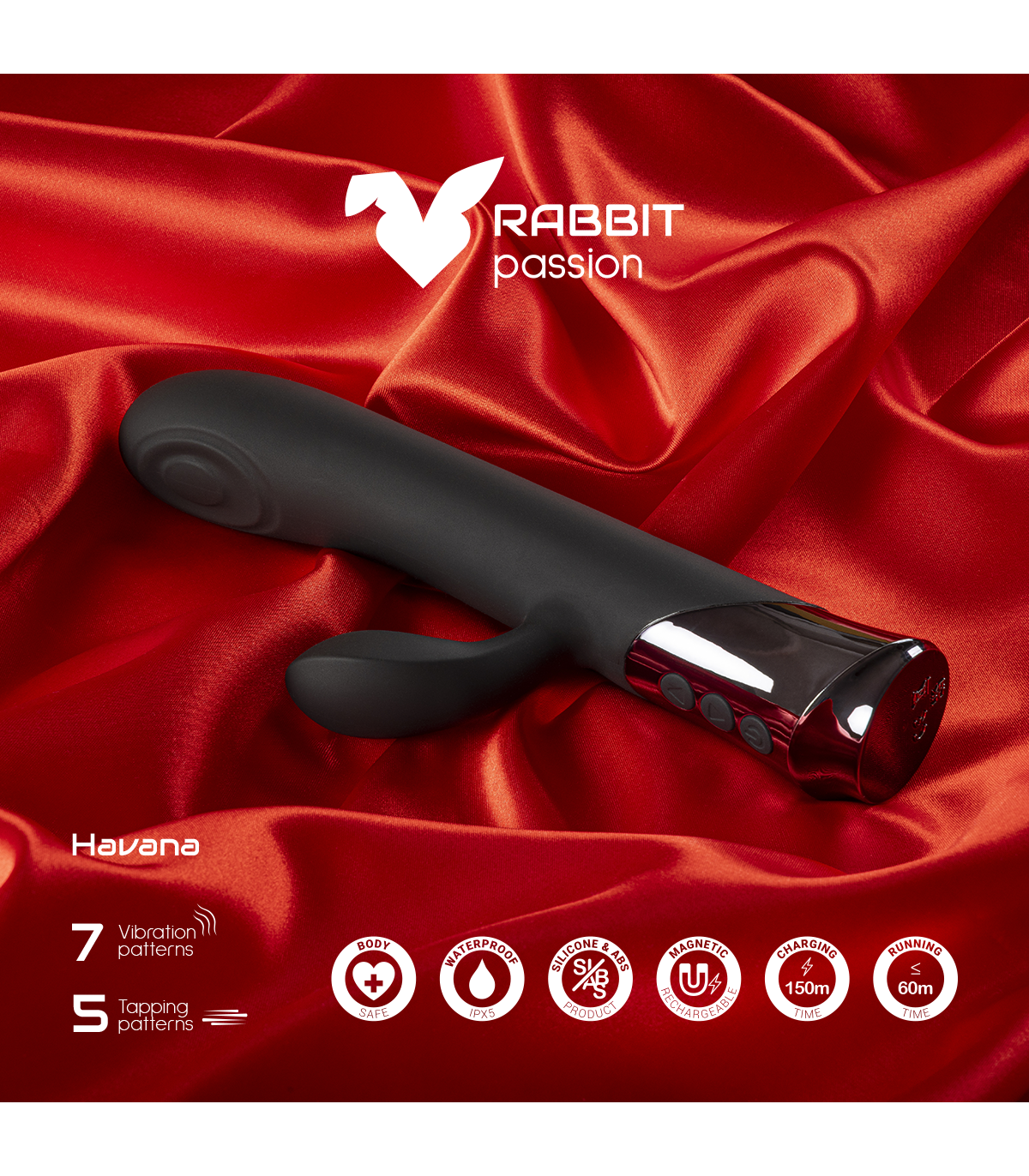VIBRATEUR RECHARGEABLE EN SILICONE HAVANA AVEC LAPIN TAPING ET TIGE TAPING