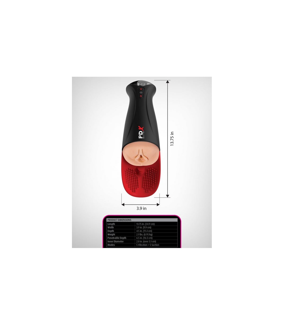 Vous l'avez demandé et nous l'avons livré ! Le PDX ELITE ® FUCK-O-Matic PRO™ XL élève la masturbation avec une aspiration puissante pour une expérience MEGA-STROKER ultime. C'est une explosion de sensations parfaite pour des séances de sexe intenses en solo, personnalisable selon votre humeur ! Préparez-vous pour une vibration explosive et mains libres qui entoure vos testicules de rangées et de rangées de picots doux et agréables. Votre expérience ultime de masturbation XL est prête quand vous l'êtes !