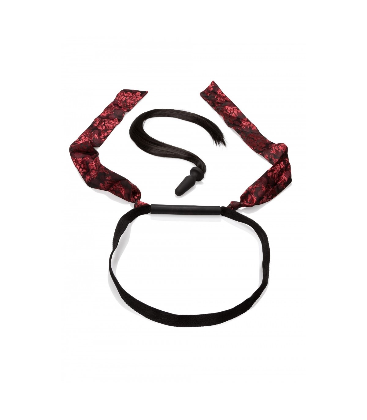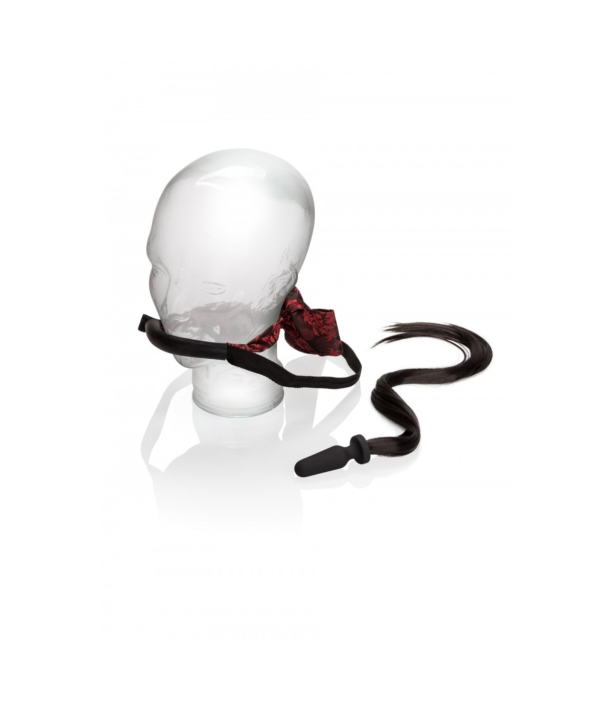 Kit composé d'un bâillon et d'un plug anal avec queue.