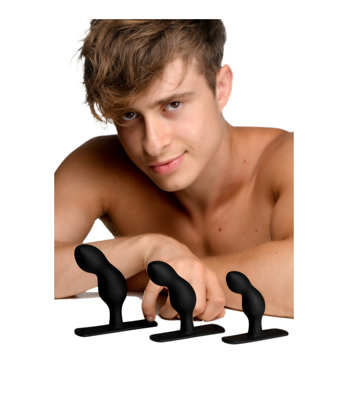 Graduated P-Spot Plugs: The unique curve and shape of these plugs are designed to stimulate and massage the prostate for maximum backdoor pleasure! Try small, medium and large to train yourself and enjoy the larger sizes.